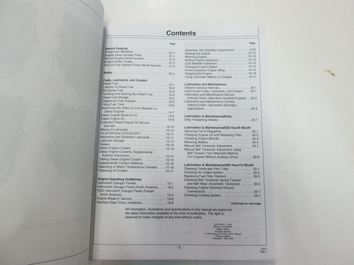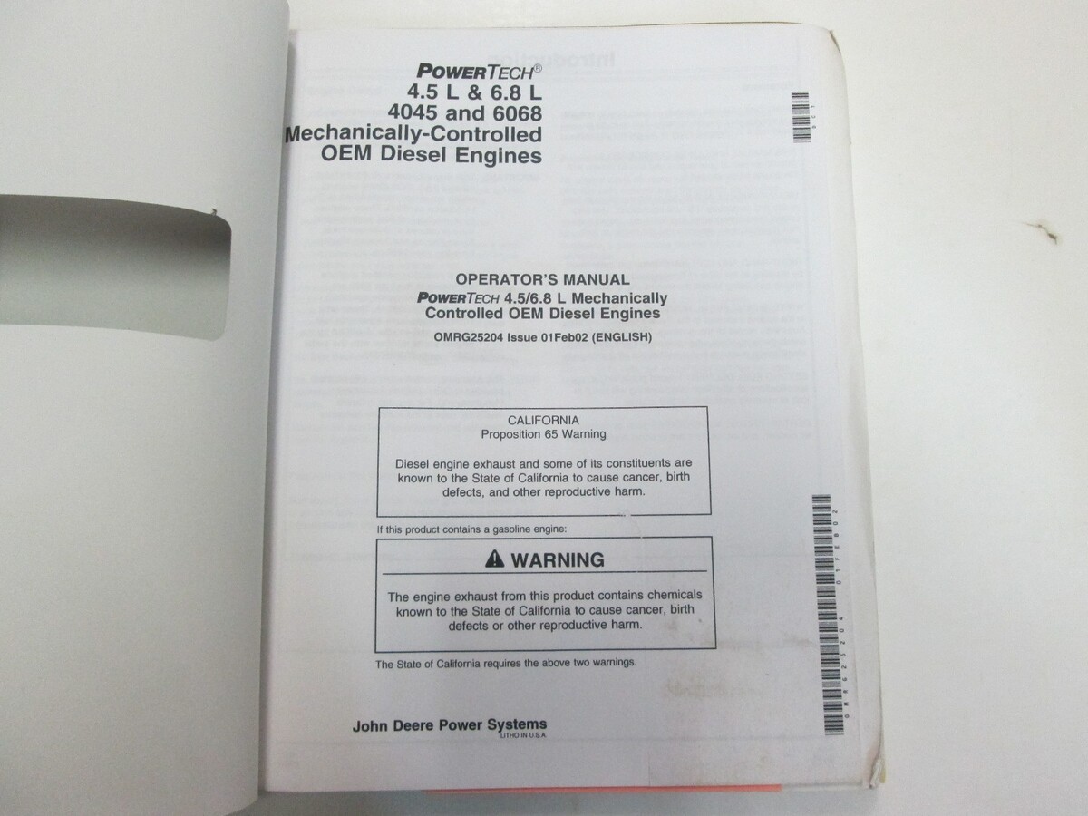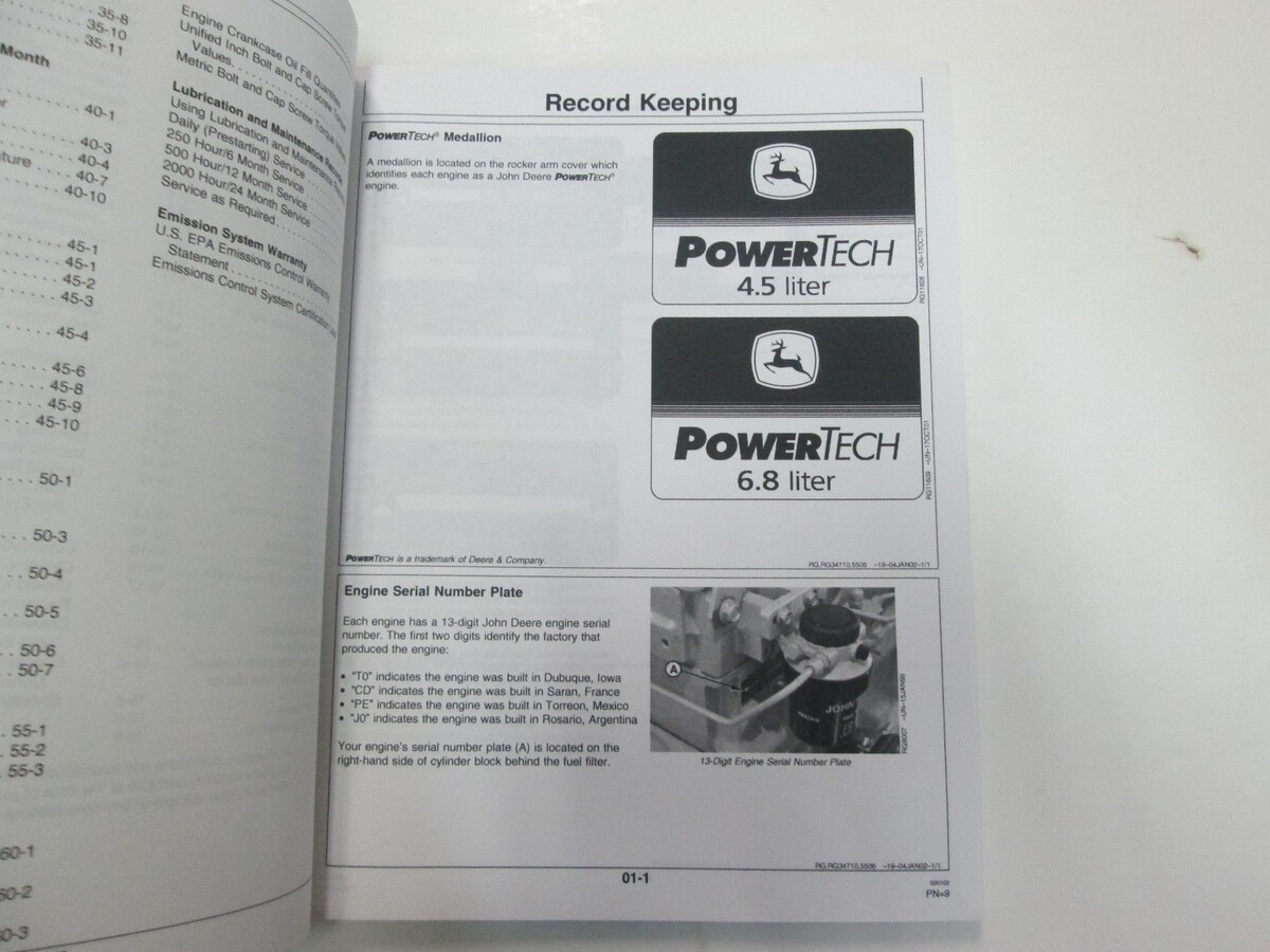 John Deere Powertech 4.5 L & 6.8L Motori Diesel Operatori Manuale OMRG25204