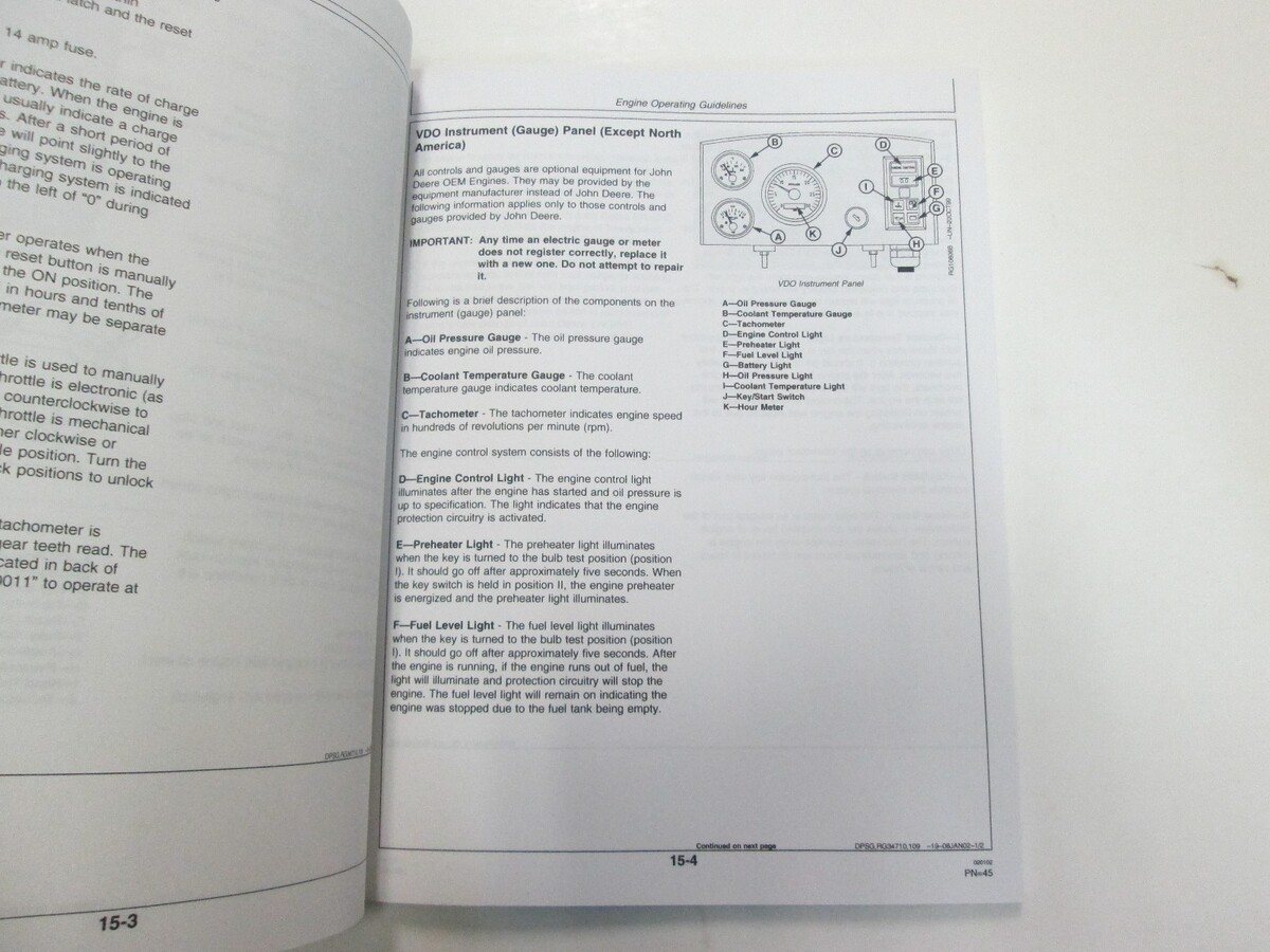 John Deere Potenza Tech 3029 2.9L Motori Diesel Componente Manuale CTM125 OEM