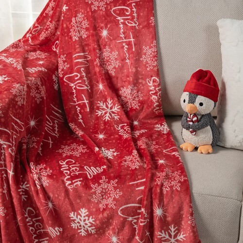 MERRY CHRISTMAS LIGHT BLANKET VERY SOFTY & WARM WITH PLUSH PENGUIN TOYS