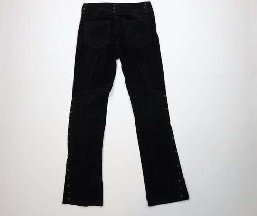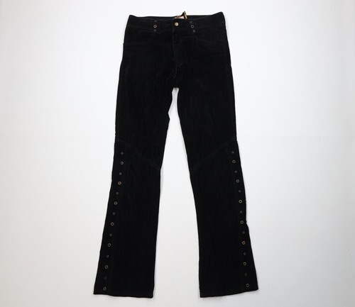 Vtg 90s Lip Service Womens 32 Gothic Band Riveted Flared Velvet Pants Black USA