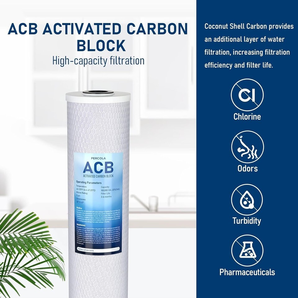 3-Stage Whole House Water Filter, Pp, Kdf, Acb Cartridge |