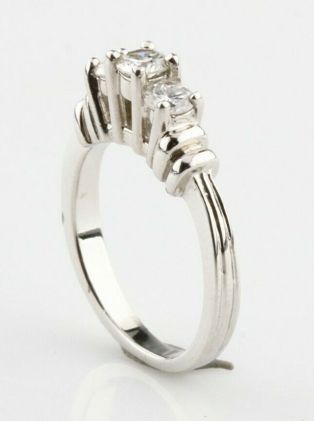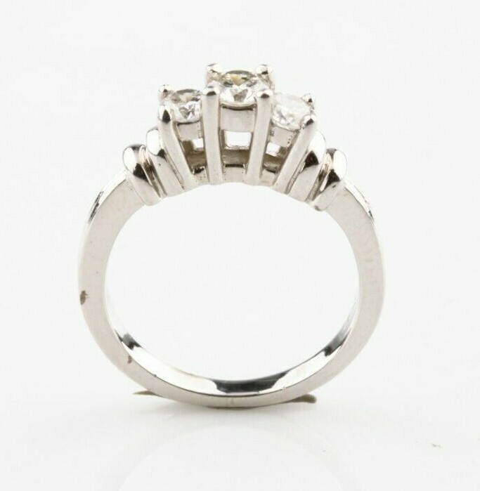 0,70 Karat Drei-Stein Diamant 14k Weißgold Verlobungsring Große 6,75