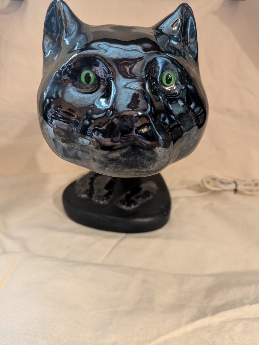 Noir Cat Tête Pieds Queue Col-de-Cygne Lampe Bureau Céramique Modern Lightcraft