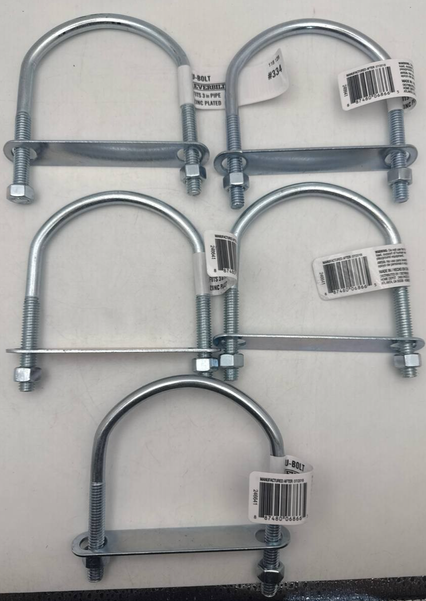 Coarse Zinc Plated U Bolt 3/8" Steel Threaded Clamp Pack of 5 Heavy Duty
