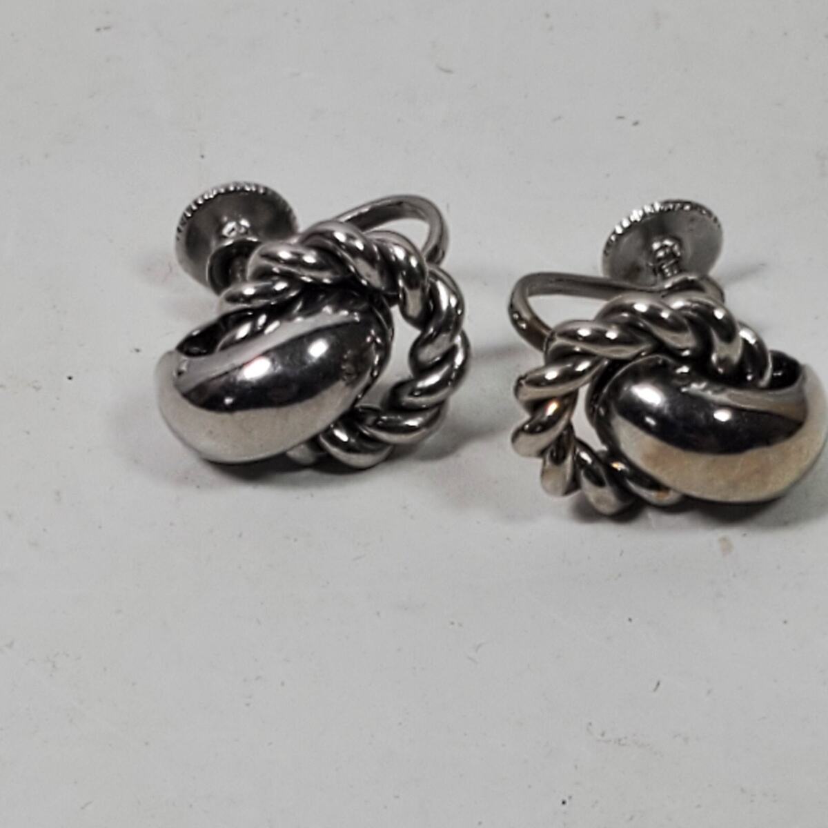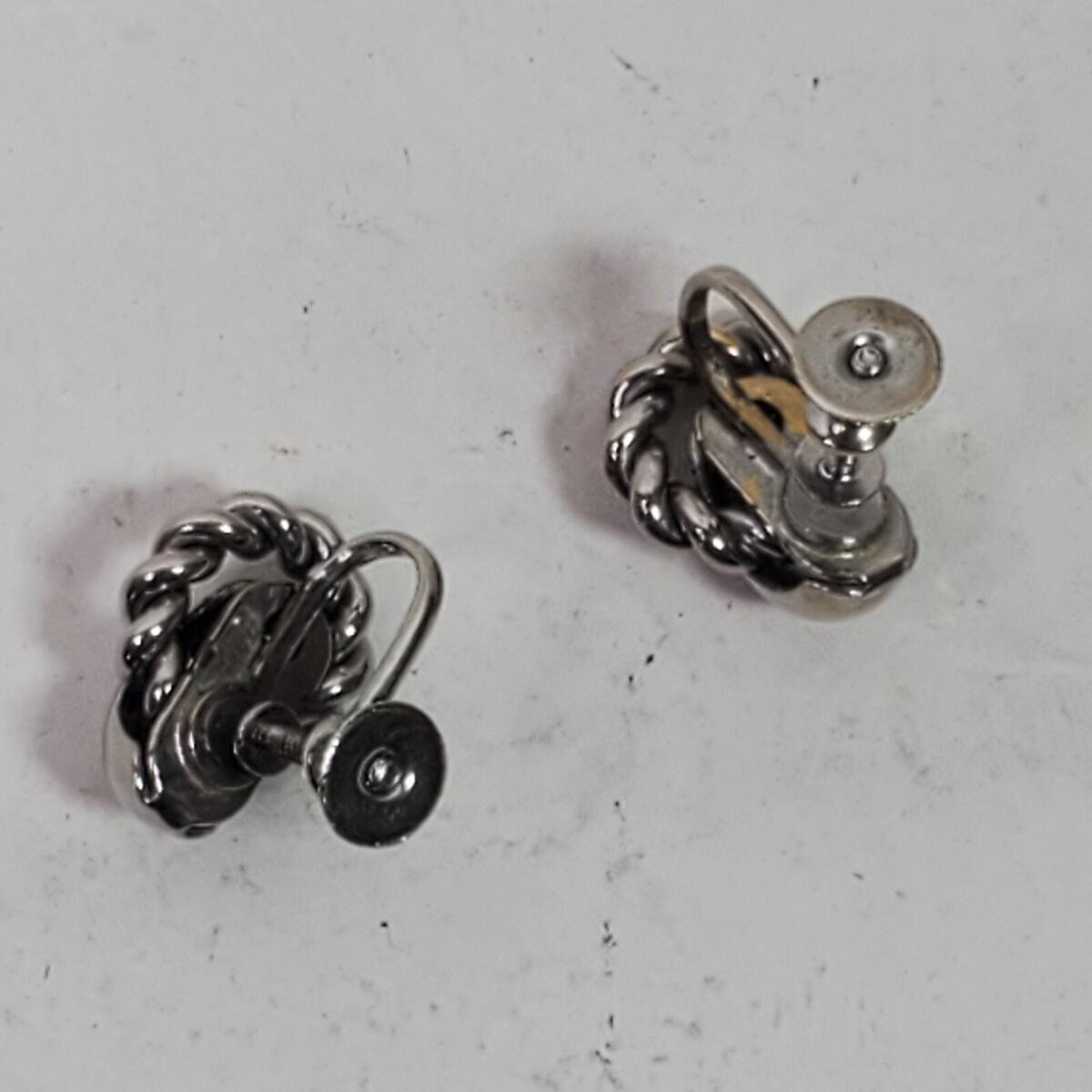 Vintage Screw Back Earrings Silver Tone .65 Inch Decorative Rope Style