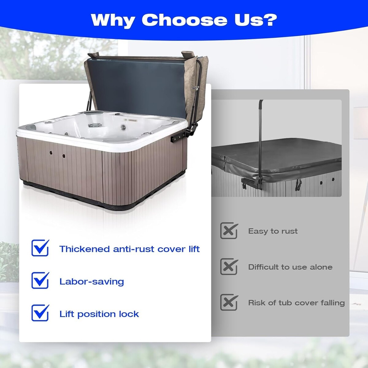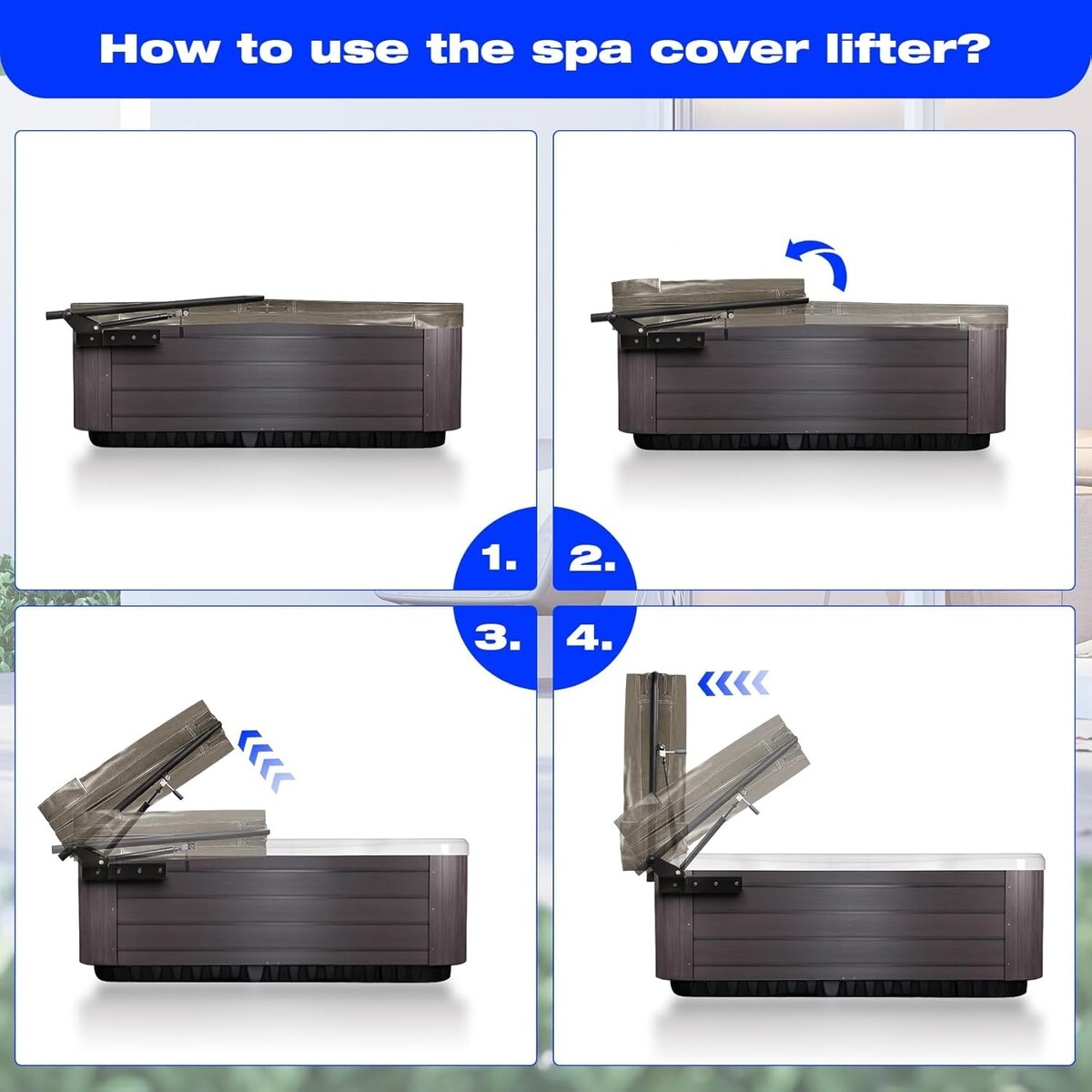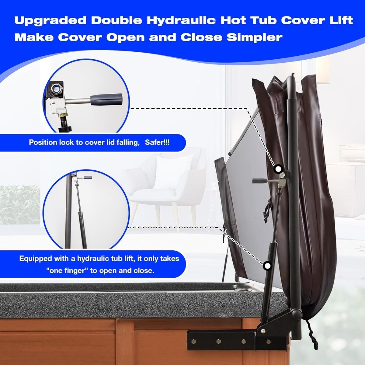 Hydraulic Hot Tub Cover Lift, Spa Cover Lifter for Hot Tub, Heavy-Duty Spa Cover Lift Removal System, Adjustable Height Width, Rust Resistant, Fit for Most Spa Hot Tubs