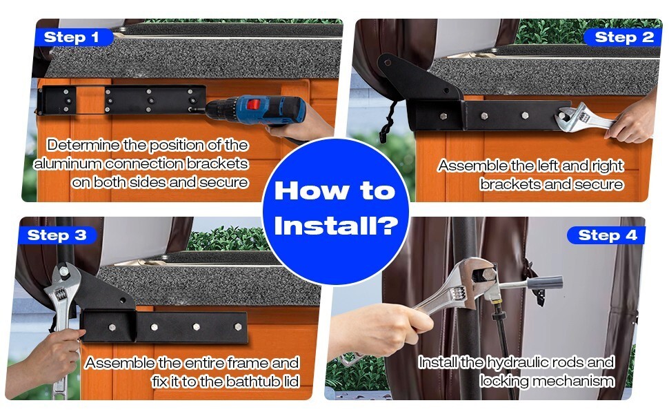 Adjustable Universal Compatibility: Fits most rectangular hot tubs (lengths 74.8-98.4 inches, widths 69-96.5 inches) with customizable height, width, and bracket angles for a perfect fit.