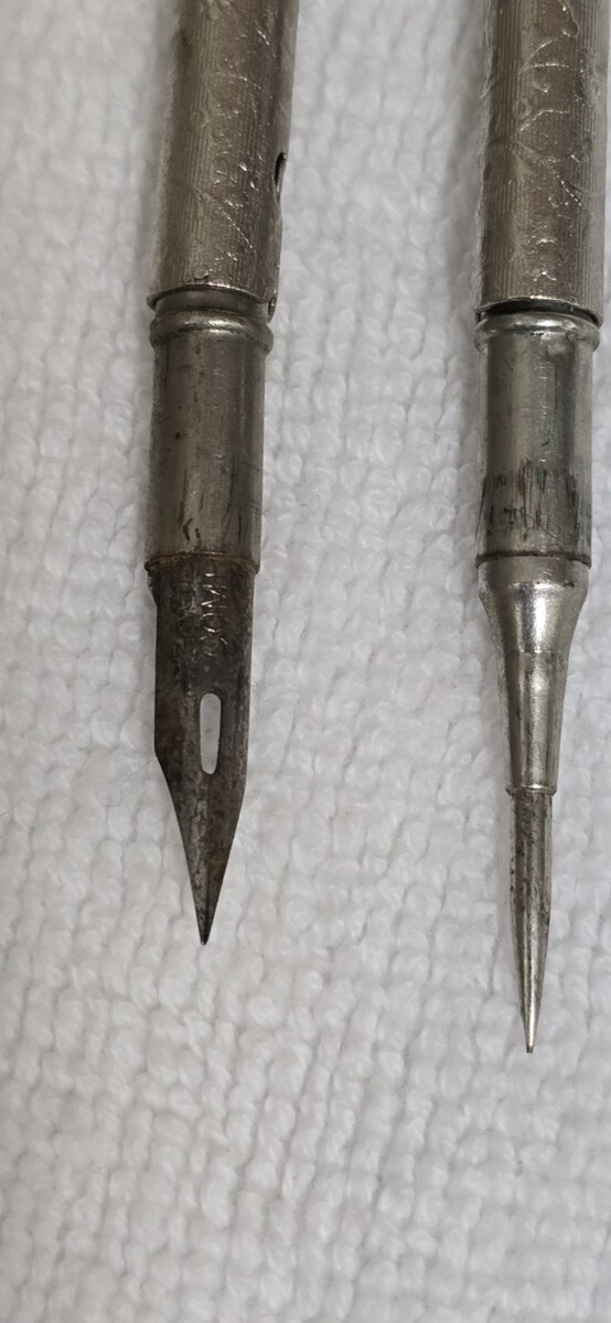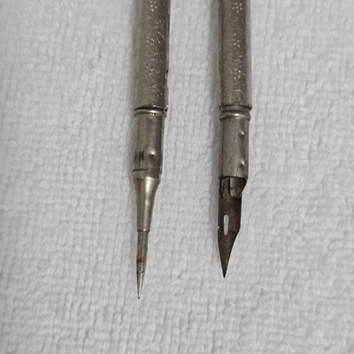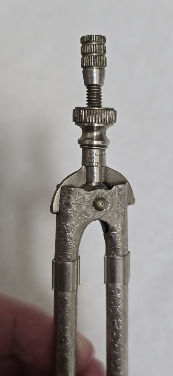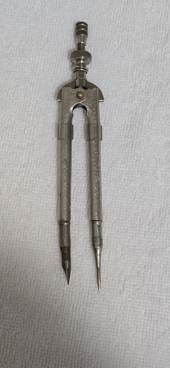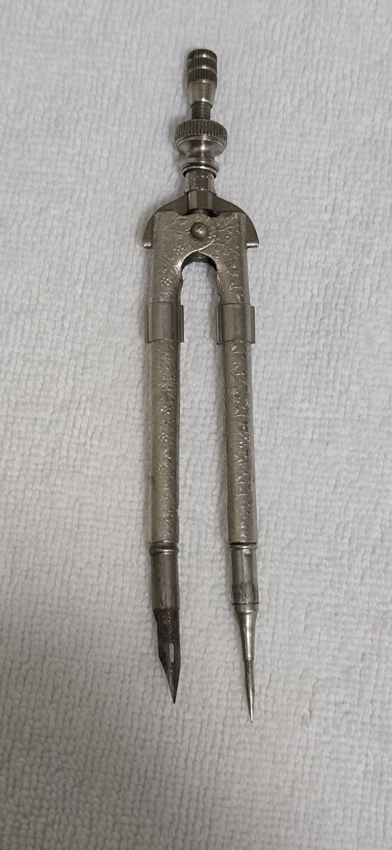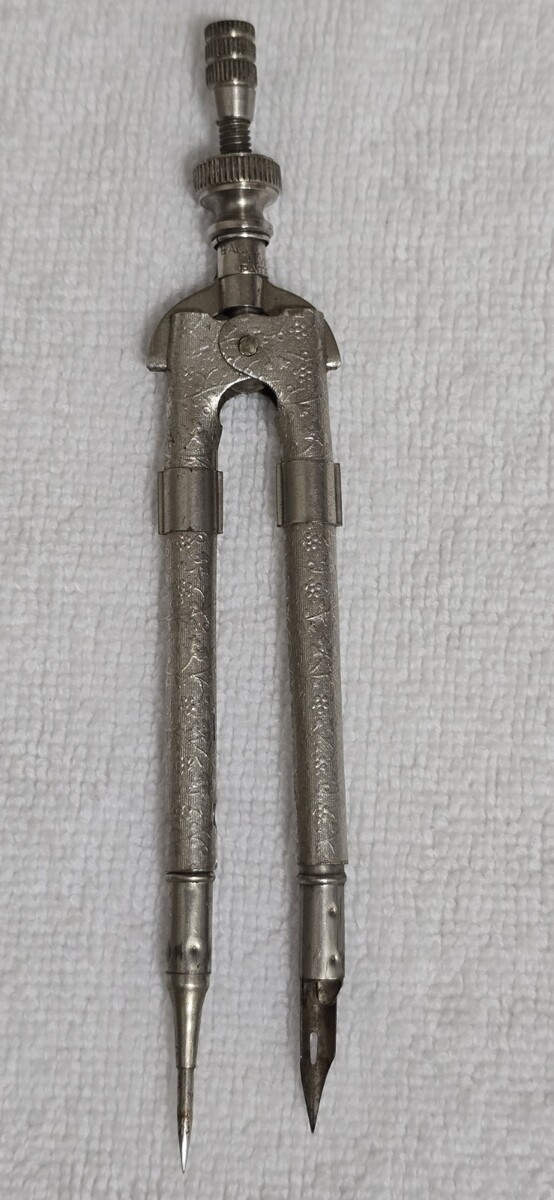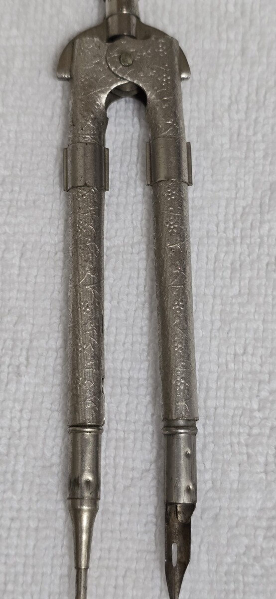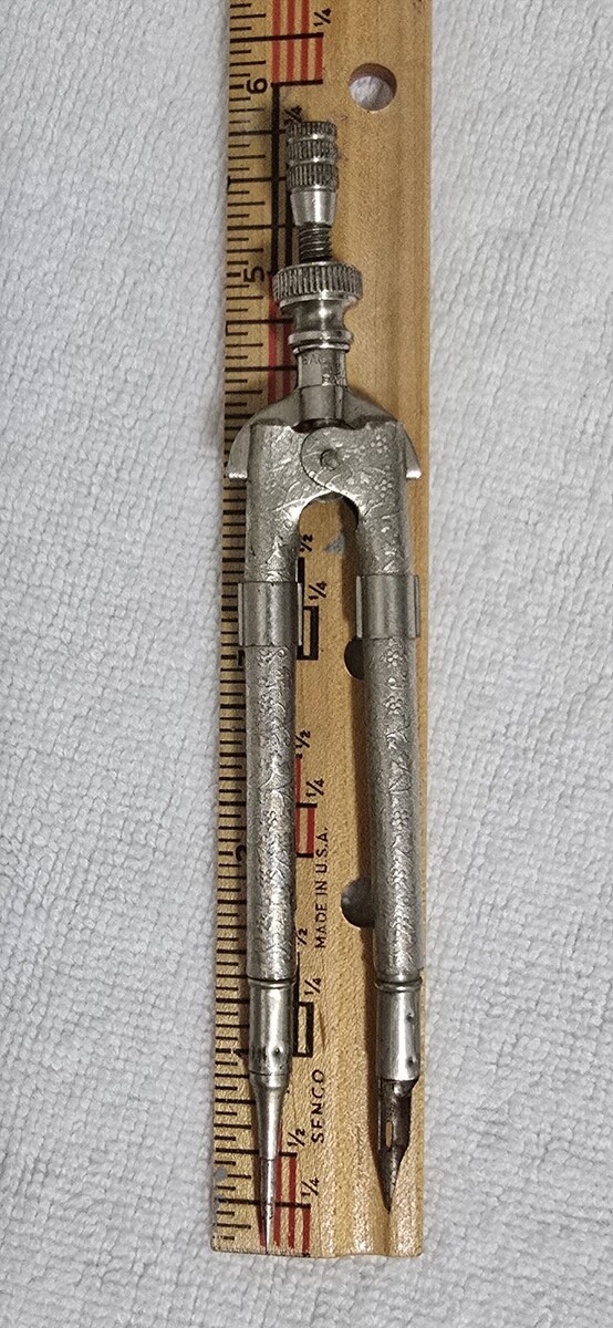 Vintage Eagle Pencil Company Silver Embossed Drafting Compass Tool w/ Eagle Fountain Nib - Made in USA.
