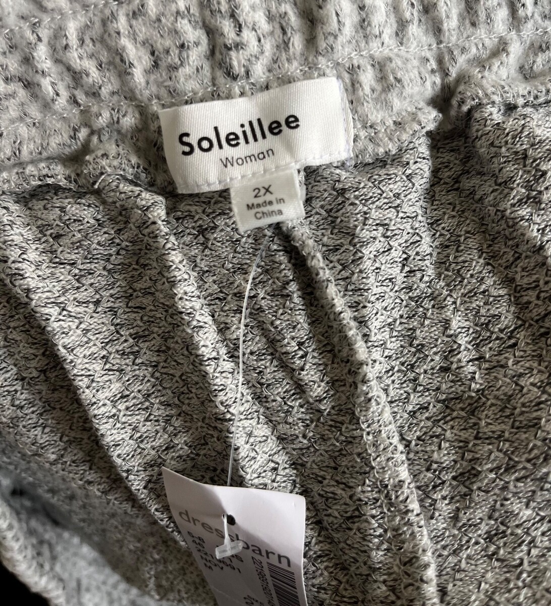 Soleillee Sz 2X Stretch Pull On Gray Knit Yoga Pants Loose Sweatpants Pockets