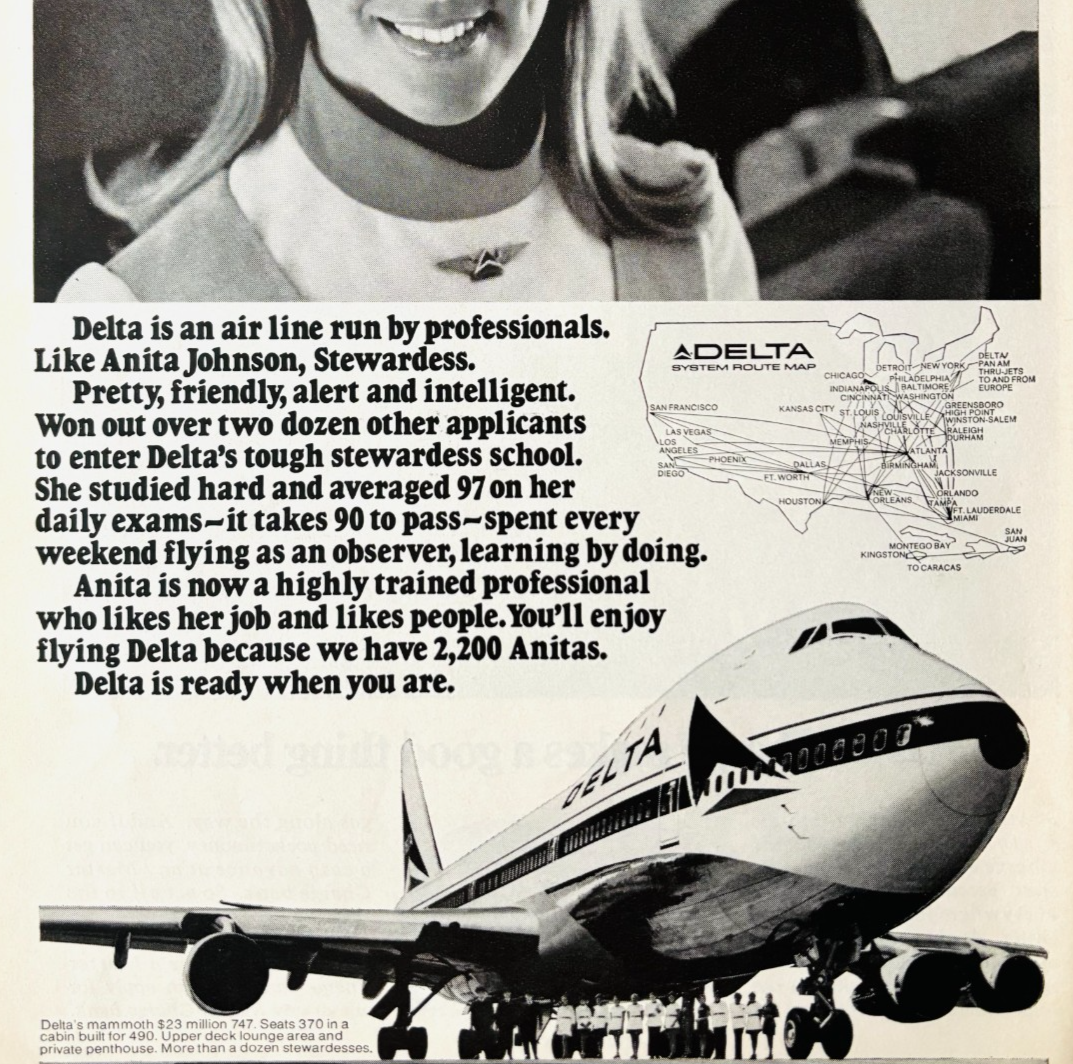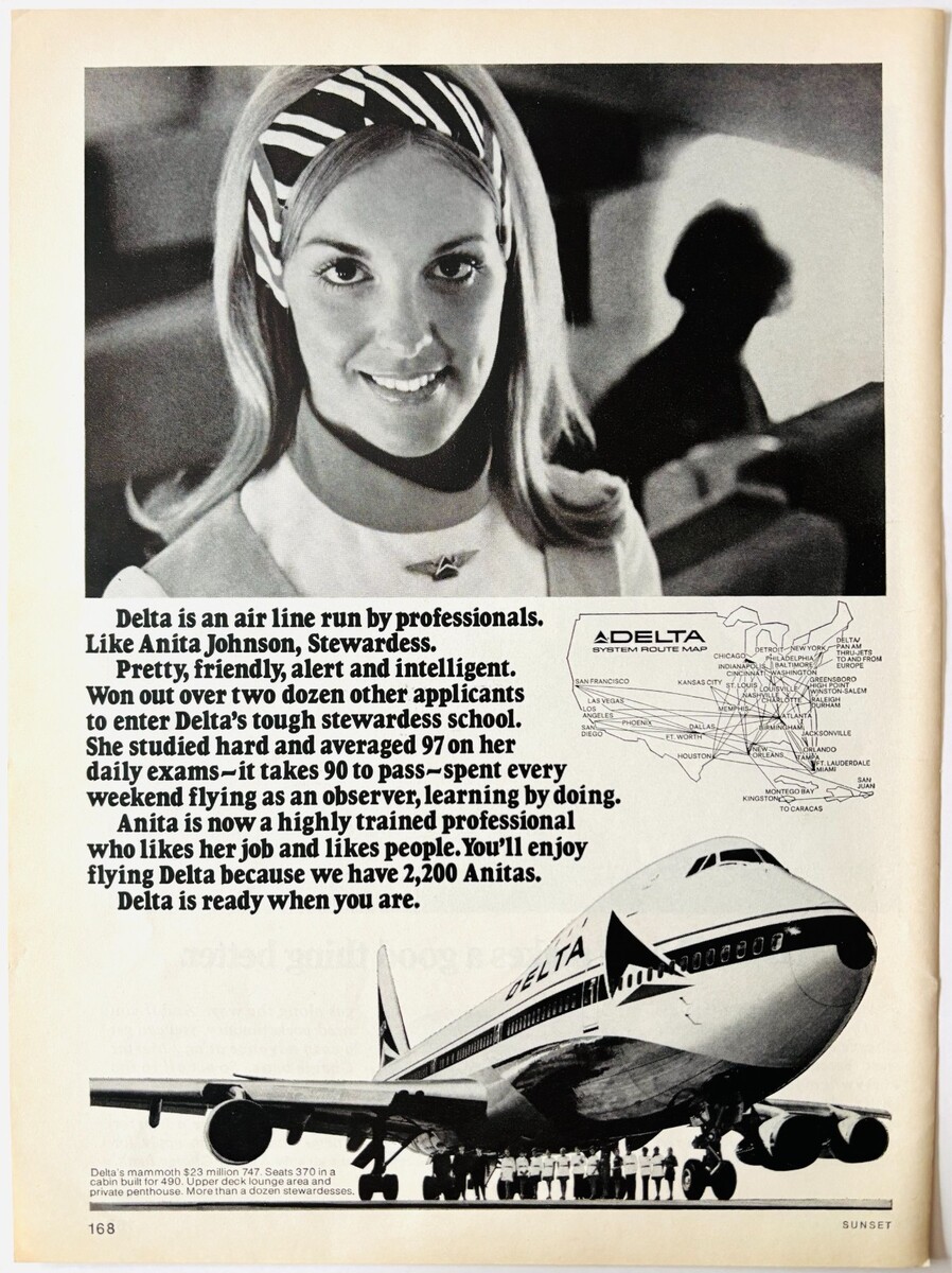 1972 Delta Airlines Advertisement 747 Mammoth Plane Aviation Vintage DWW10D