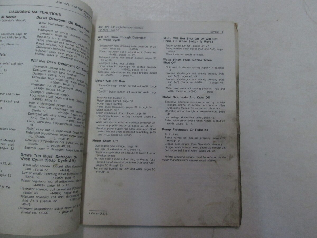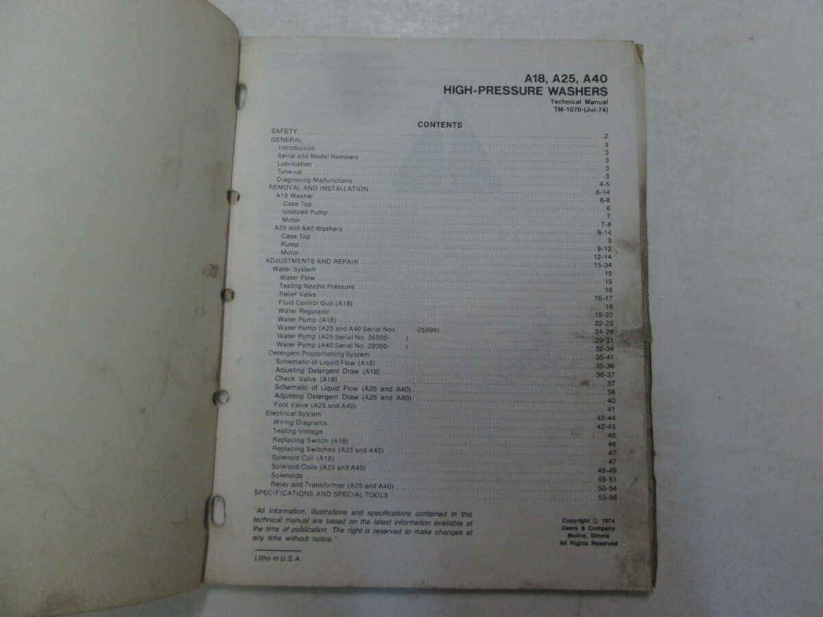John Deere A18 A25 A40 Alto Pressione Rondelle Technica Manuale Worn Macchie OEM