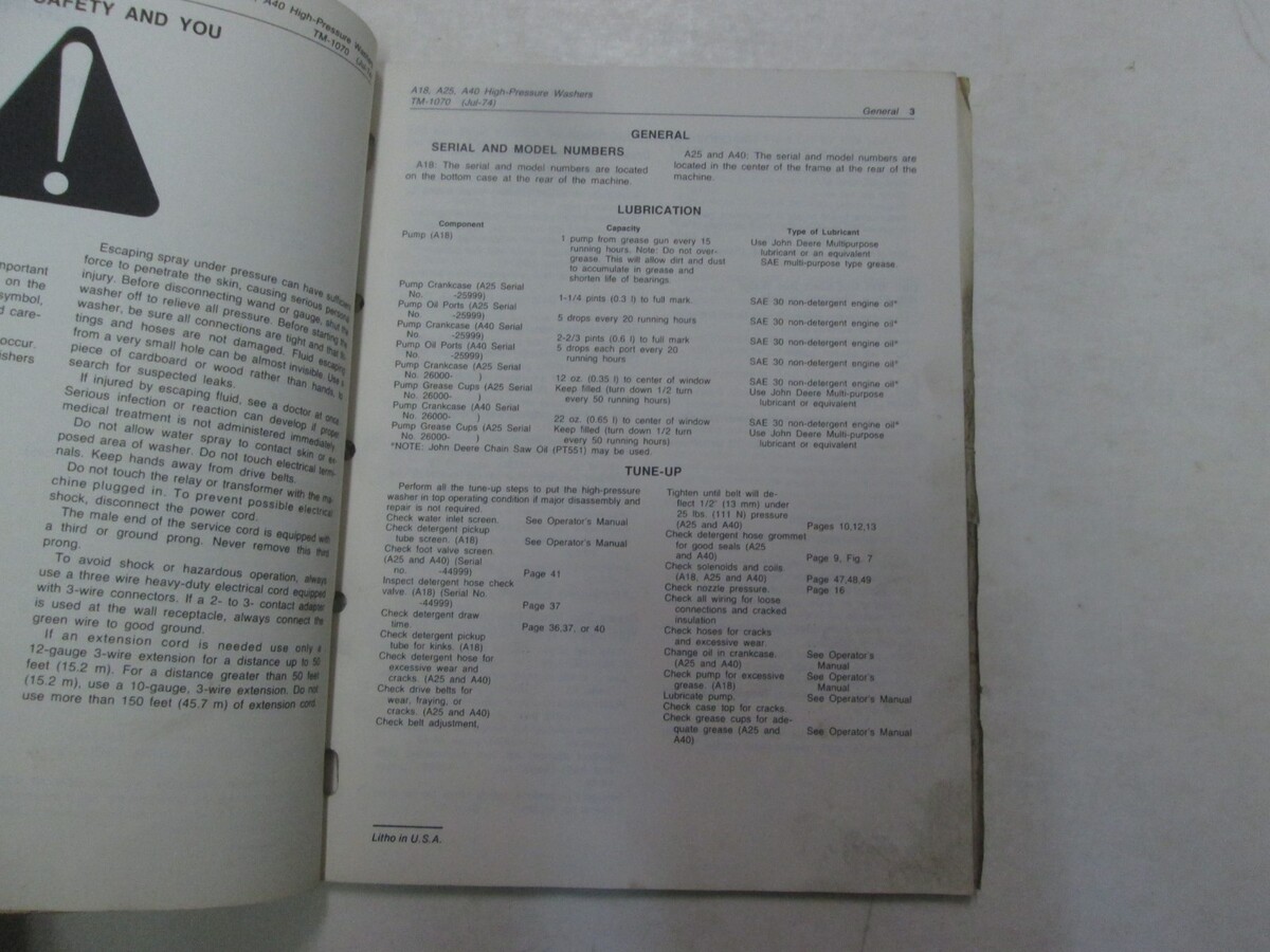 John Deere A16 Alto Idropulitrice Technica Manuale Minori Macchie Fabbrica OEM