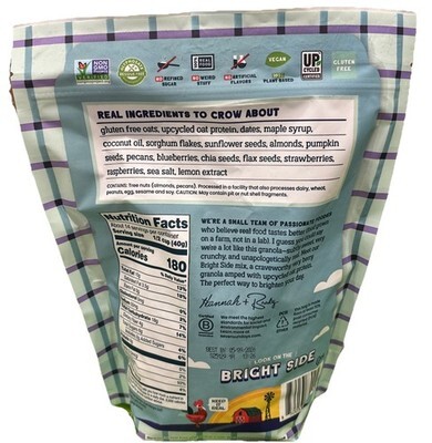 The Seven Sundays Bright Side Granola Triple Berry 20 Ounce is a delicious breakfast cereal made with natural ingredients sourced from the United States. This gluten-free and glyphosate-free granola is packed with triple berry flavor, almond, pumpkin seed, and pecans for a satisfying taste. With 180 calories per serving and 14 servings in a 20 oz pack, this granola is a nutritious and tasty option for a healthy breakfast.