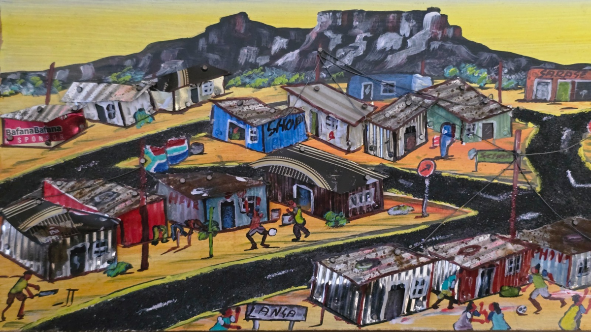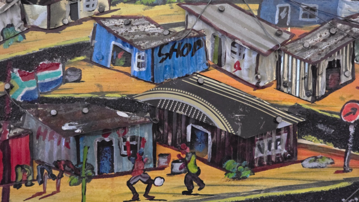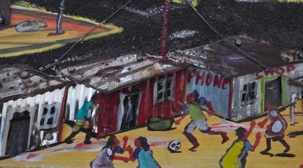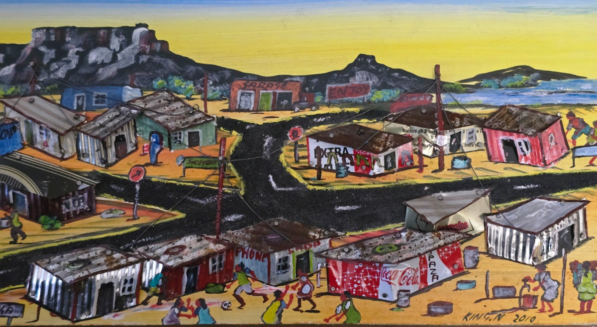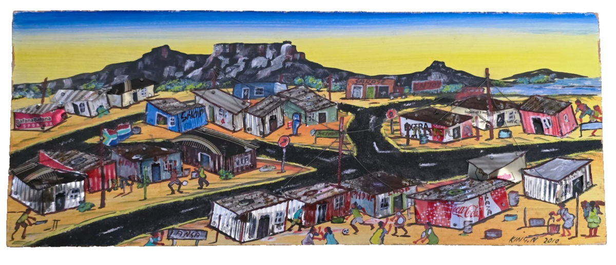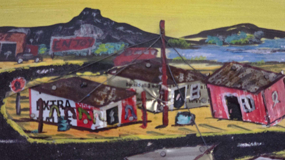 Signed 2010 N. King South African Township 3D Tin Ad plates Mixed Media Painting