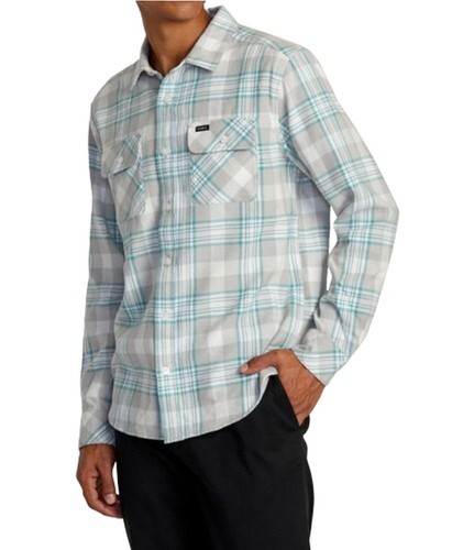 RVCA Mens Woven Button Front Shirt That'll Work Flannel Silver Bleach Large