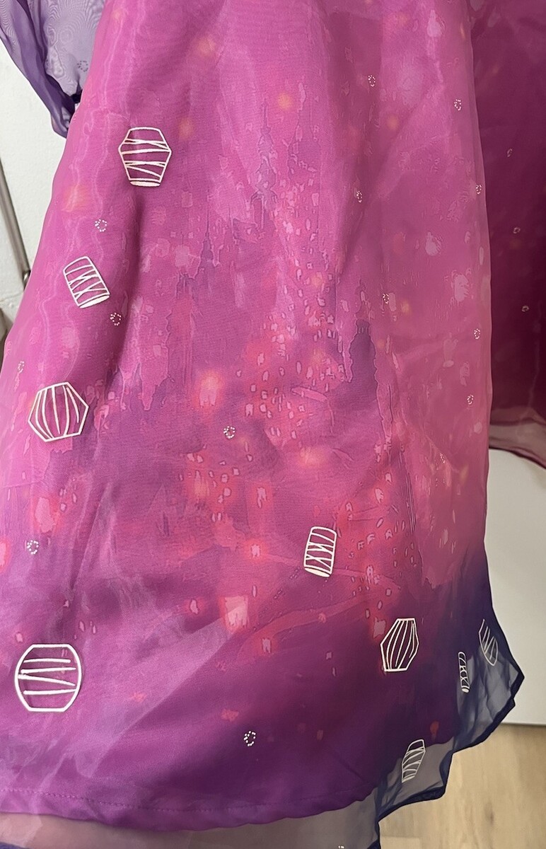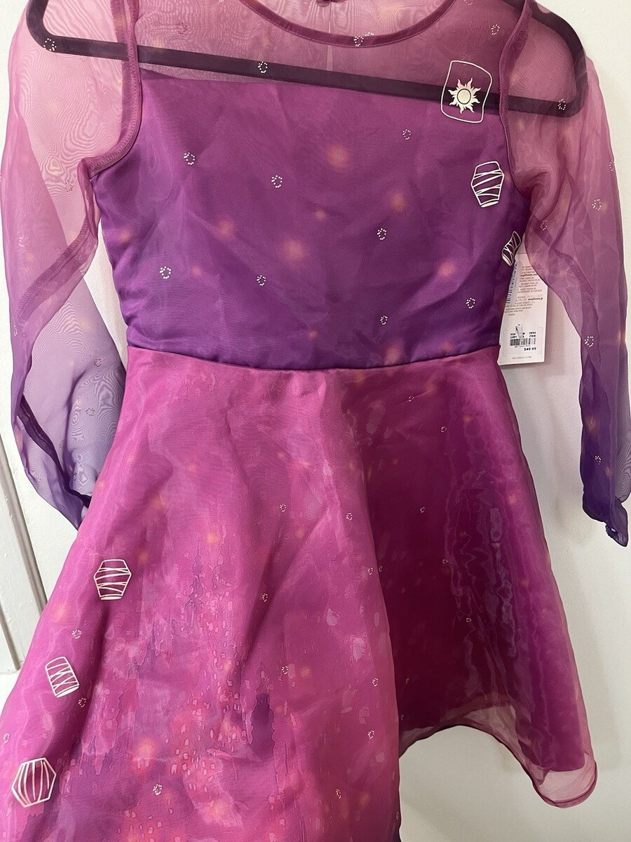 This product is a New With Tags Disney Tangled Rapunzel Tule Lanterns purple Princess Dress in Girls Size 9/10. It is a beautiful style dress inspired by the movie Tangled/Rapunzel. Made for young princesses who love the enchanting tale of Rapunzel, this dress is perfect for dress-up play or special occasions. The purple color adds a whimsical touch to the Princess theme, making it a delightful choice for any little girl who loves Disney princesses. Please let me know if you have any questions!