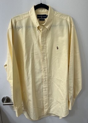 The Ralph Lauren Yarmouth Men's Yellow Button Down Long Sleeve Dress Shirt in size 16.5 34/35 is a stylish and classic addition to any man's wardrobe. Made from 100% cotton, this shirt features a solid yellow color, collared neckline, and button-down style. With a regular fit and long sleeves, this shirt is perfect for a smart-casual look or a more formal occasion. It is a versatile and timeless piece for any man's clothing collection. Please let me know if you have any questions!