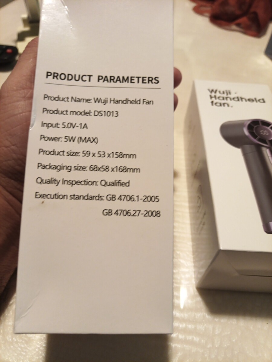 The 2 Pack Wuji Portable Handheld Fan in white features an LED remaining power display and is made of durable ABS plastic. This portable ventilation fan is designed for handheld use and offers adjustable tilt/head options for personalized comfort. With a rechargeable feature, this fan provides quiet operation for a peaceful indoor environment. The sleek white design adds a touch of elegance to any room.