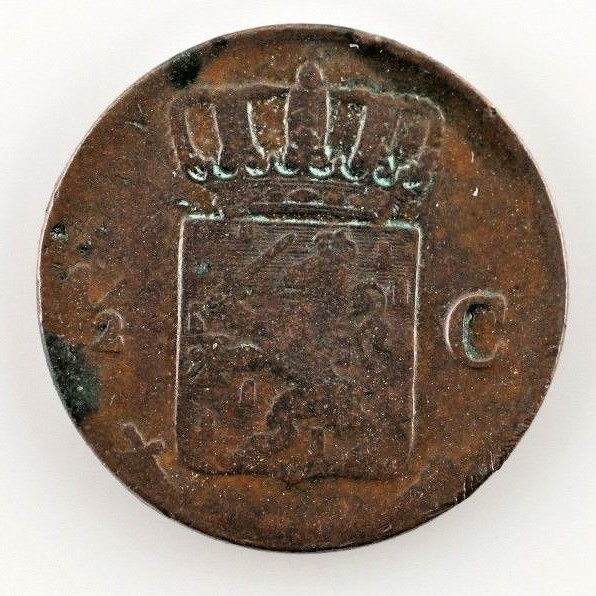 Moneta in rame da 1/2 centesimo olandese del 1853 in ottime condizioni