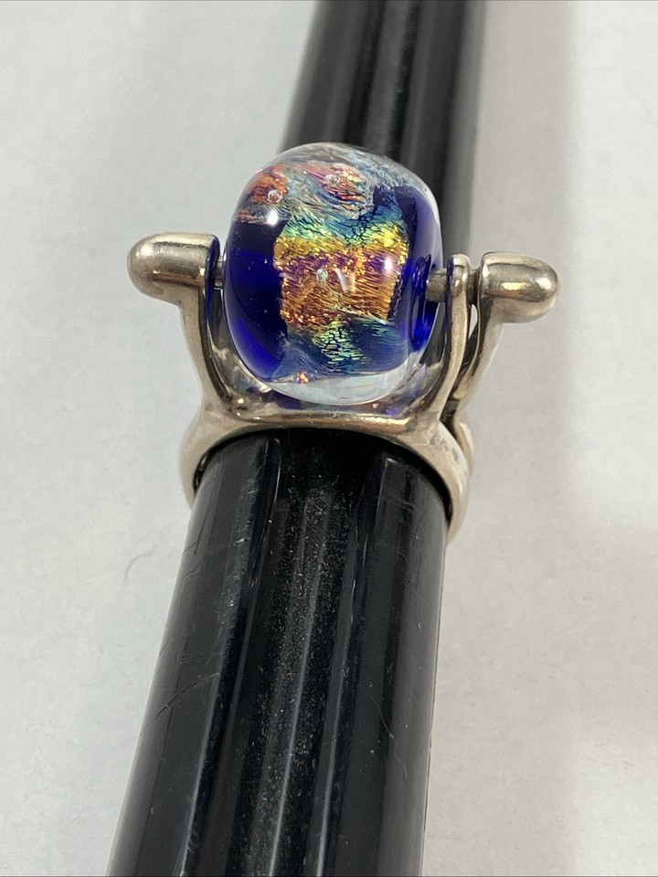 Sterling Silver 925 Dichroic Glass Fidget Size 7 Ring Hallmarked Bulls Head “GB”