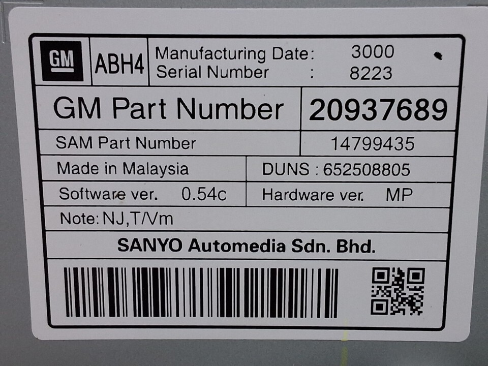 2010 to 2011 Chevrolet Equinox, GMC terrain, information display screen. Part number 20937689.