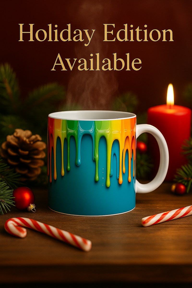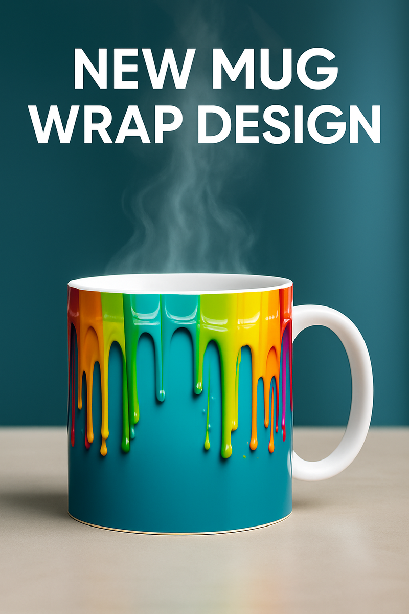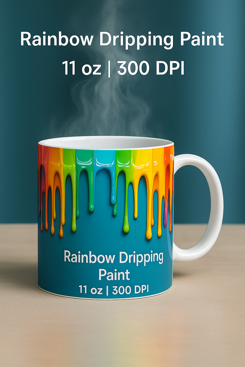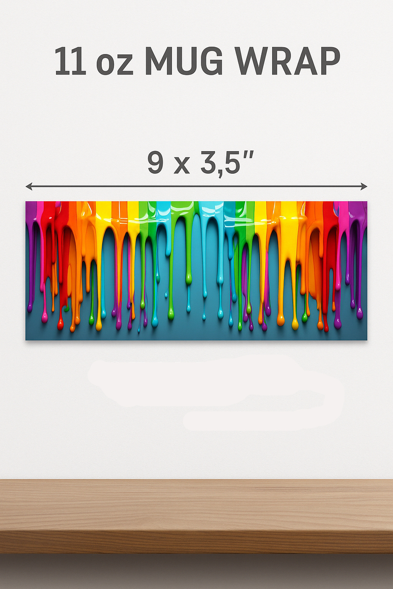 Rainbow Dripping Paint Mug Wrap | 11 oz Sublimation Design | Glossy Colorful Mug