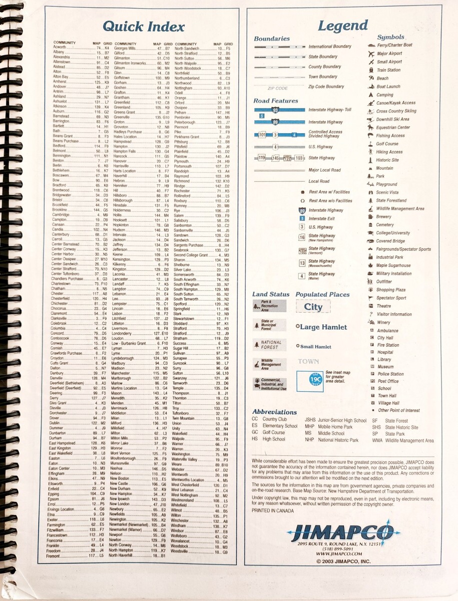 2003 New Hampshire Road Atlas First Edition Vintage JIMAPCO PB Book WHBS