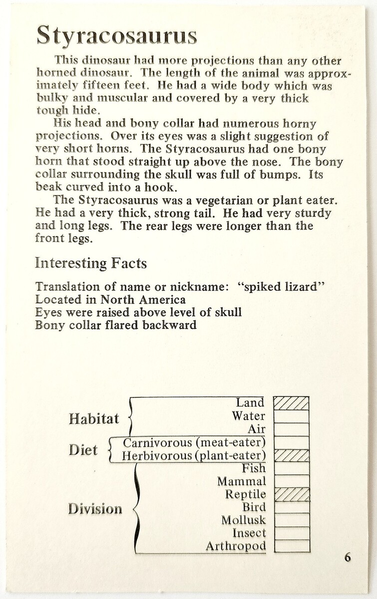 1975 STYRACOSAURUS Dinosaur Card Vintage and 50 similar items