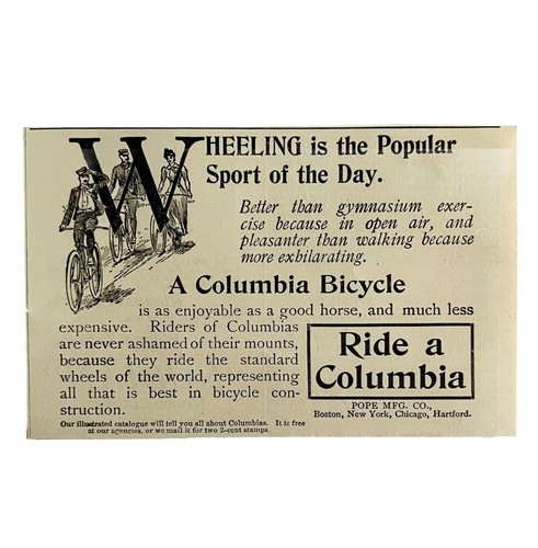 Columbia Bicycles 1894 Advertisement Victorian Pope Bikes Wheeling ADBN1u