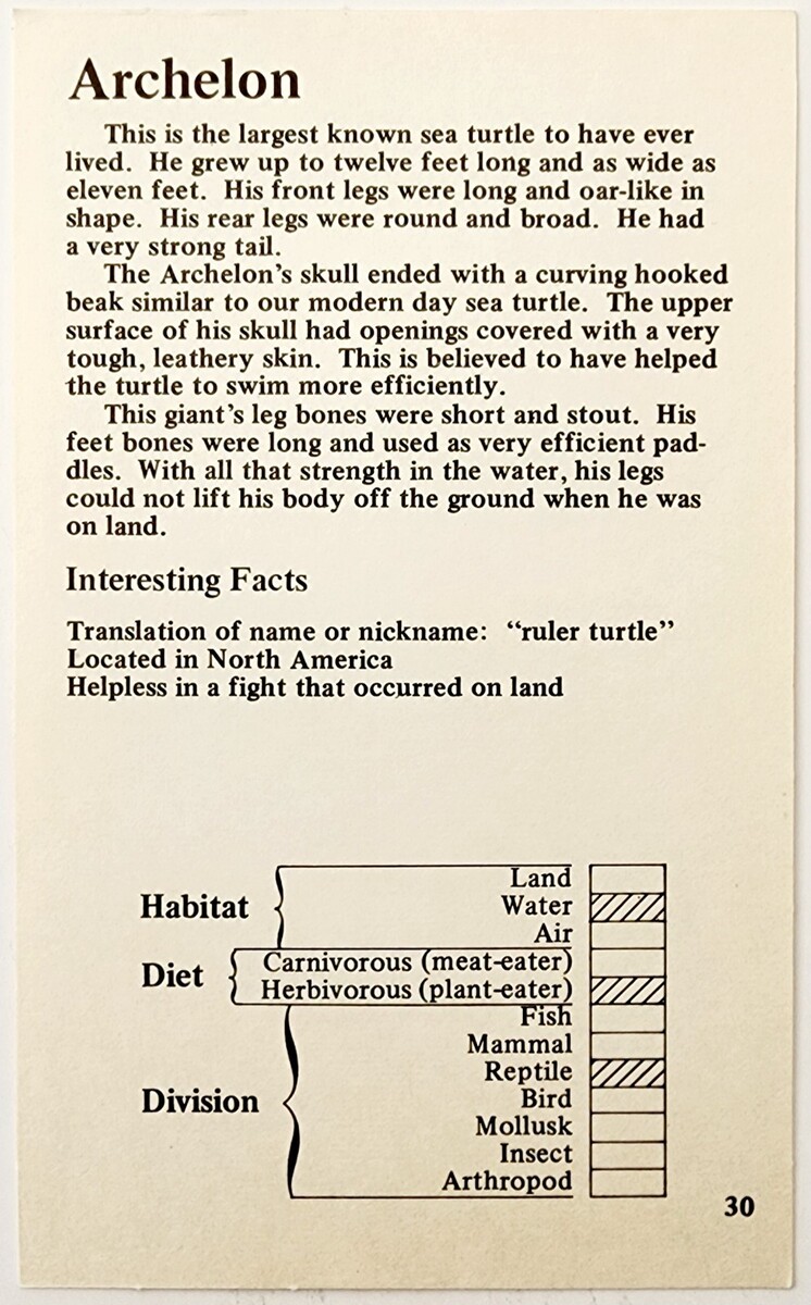 1975 ARCHELON Dinosaur Card Vintage and 50 similar items