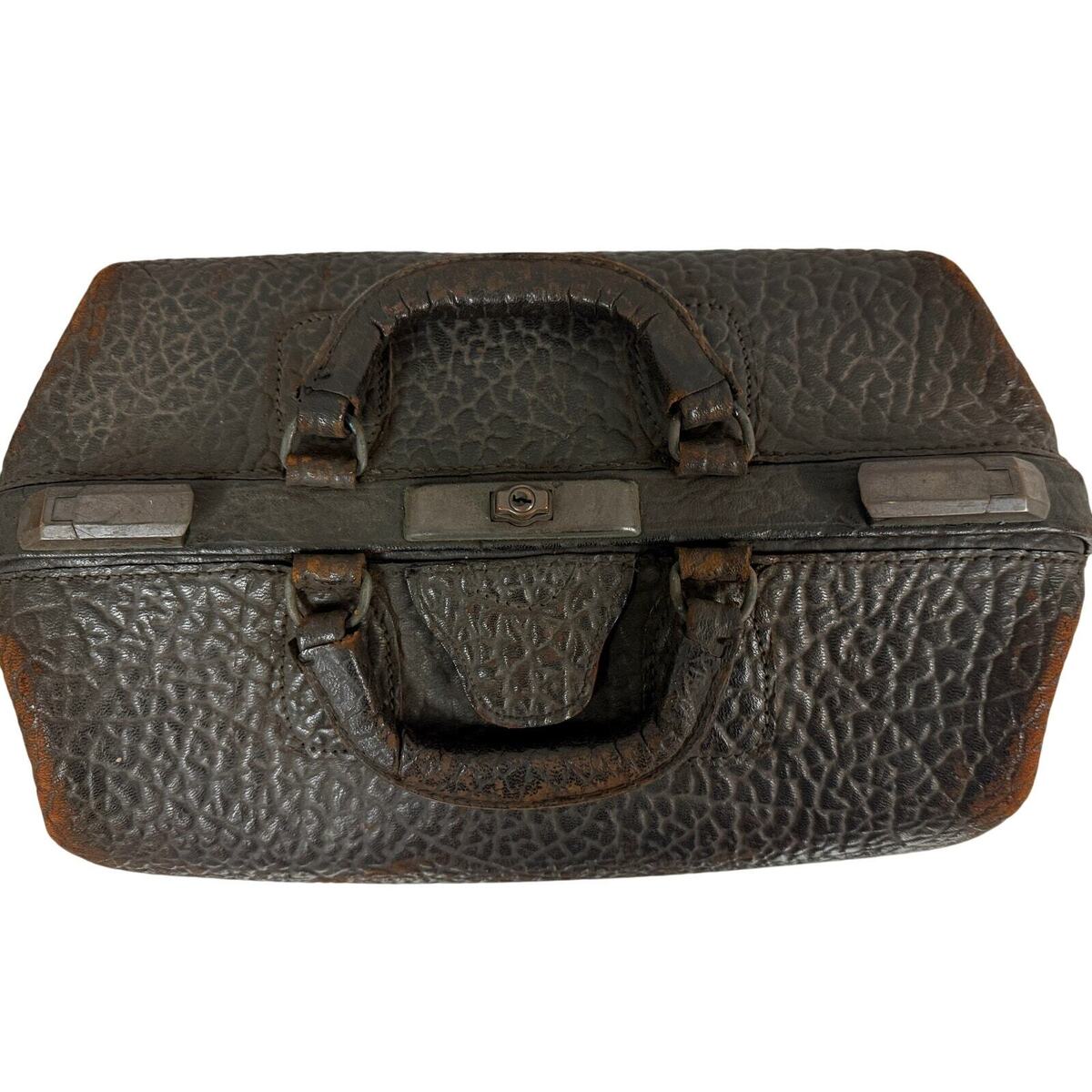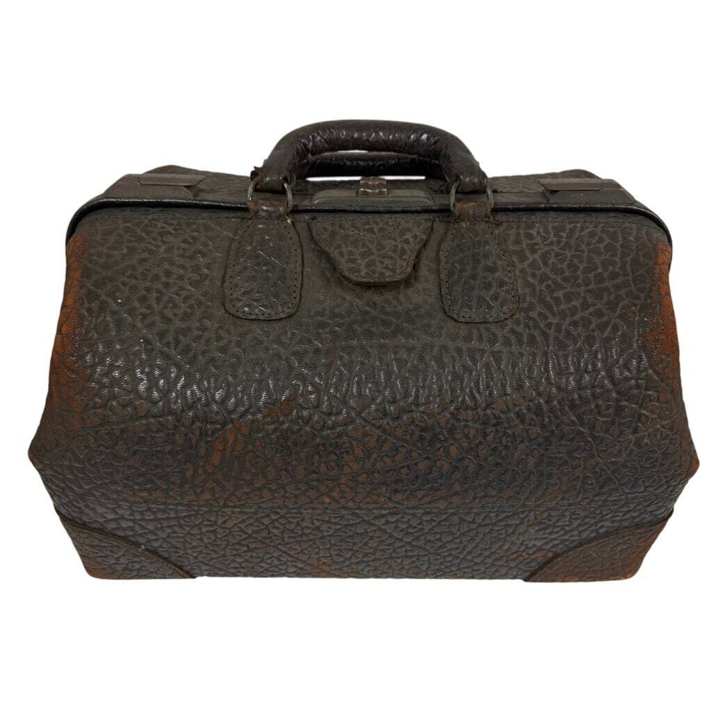 Antique Cowhide Doctor Satchel Bag Victorian Extra Large Elephant Suitcase 18"