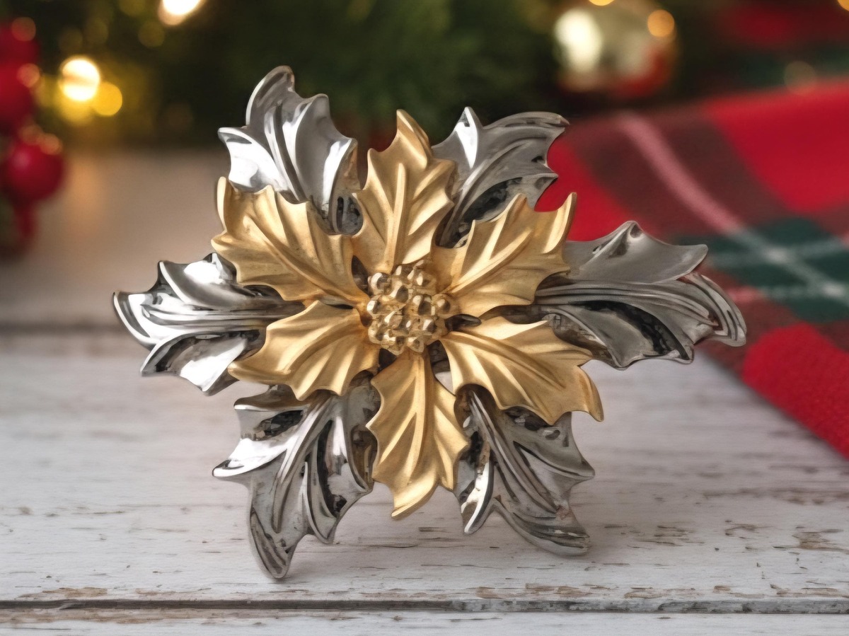 Vintage Poinsettia Brooch | Large Two Tone and 43 similar items