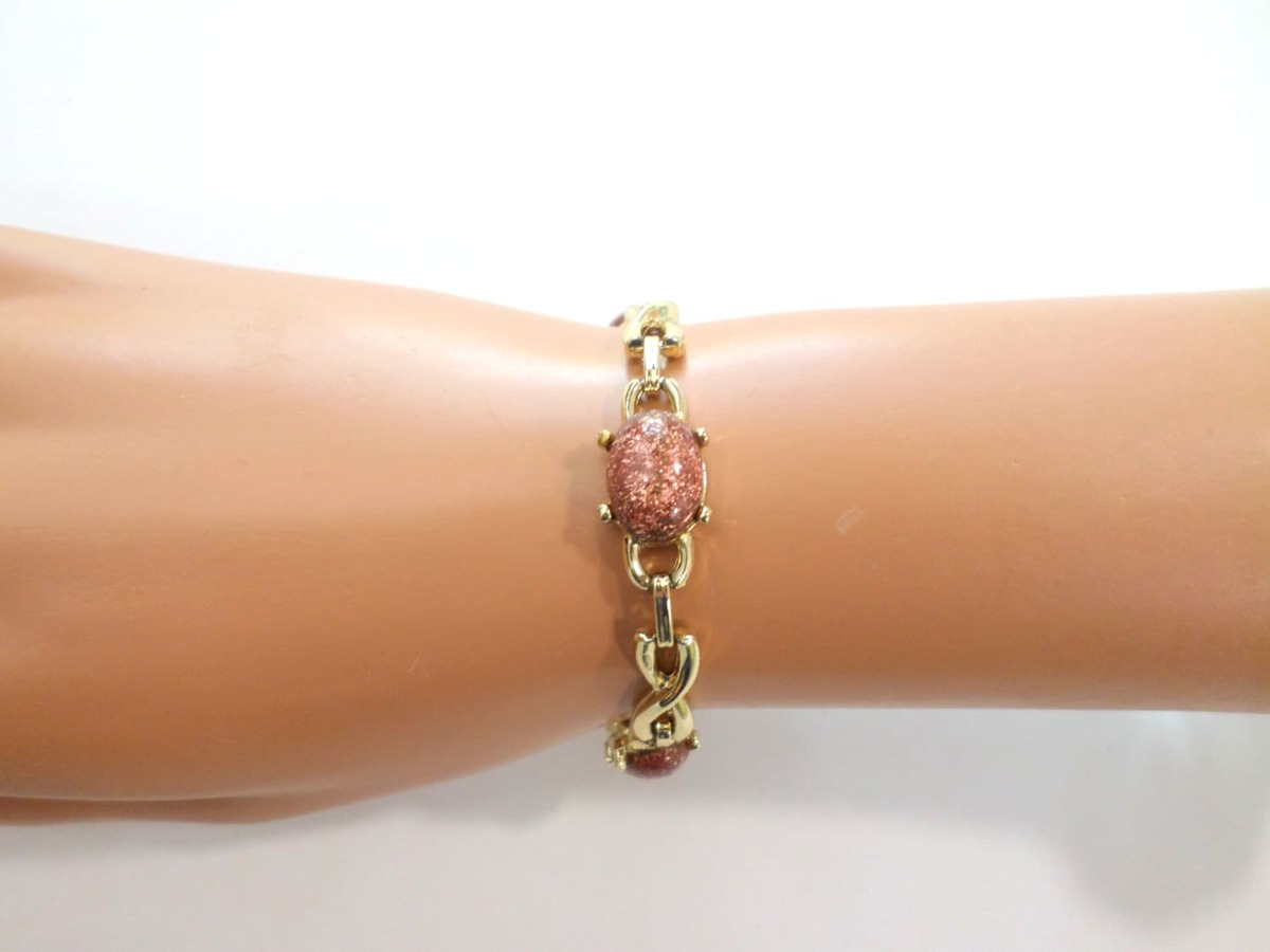 Goldstone & Gold Infinity Link Large Wrist Vintage Bracelet