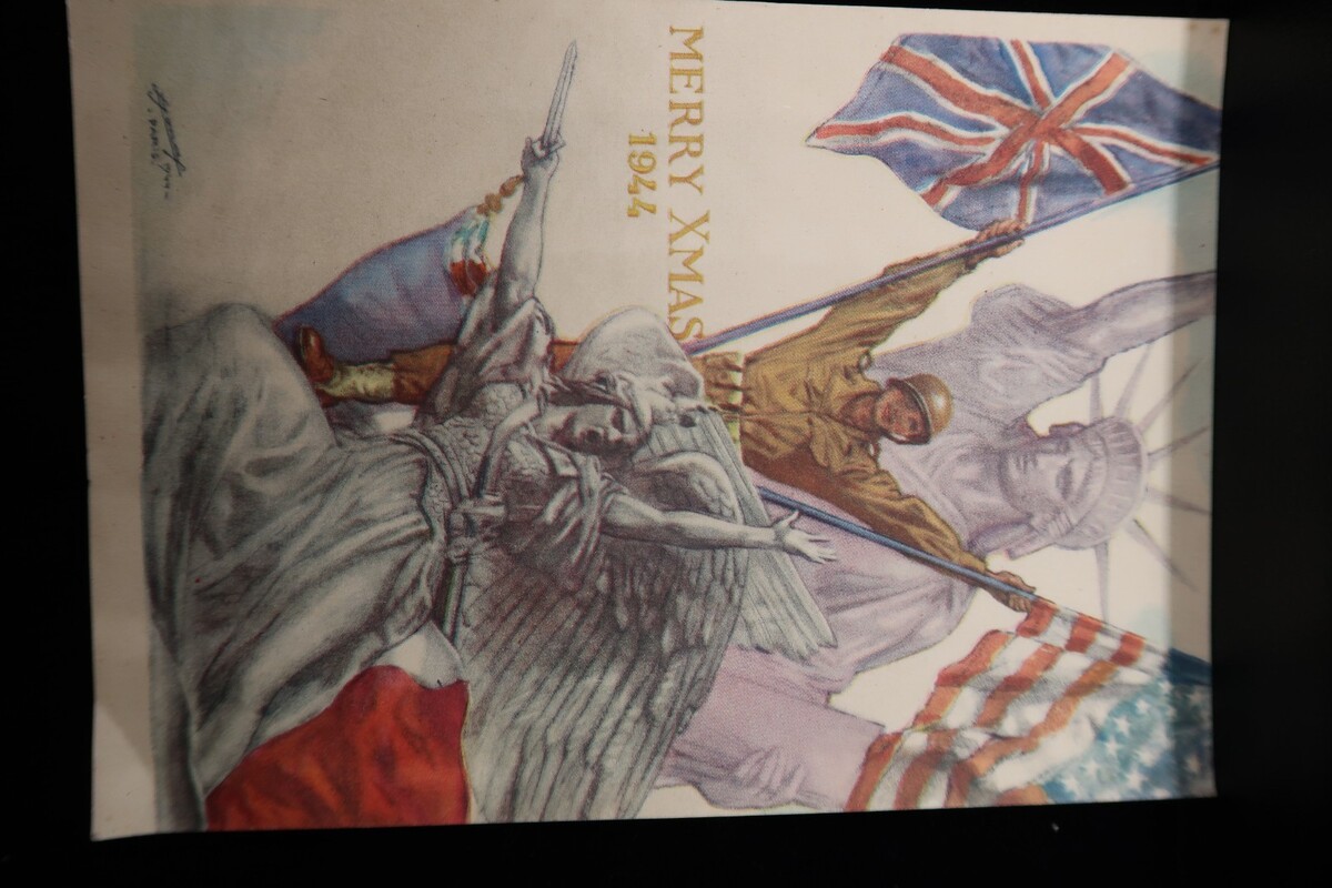 Vtg Patriotic Christmas Card '44 Allied Forces Europe Signed Paris WWII Ephemera