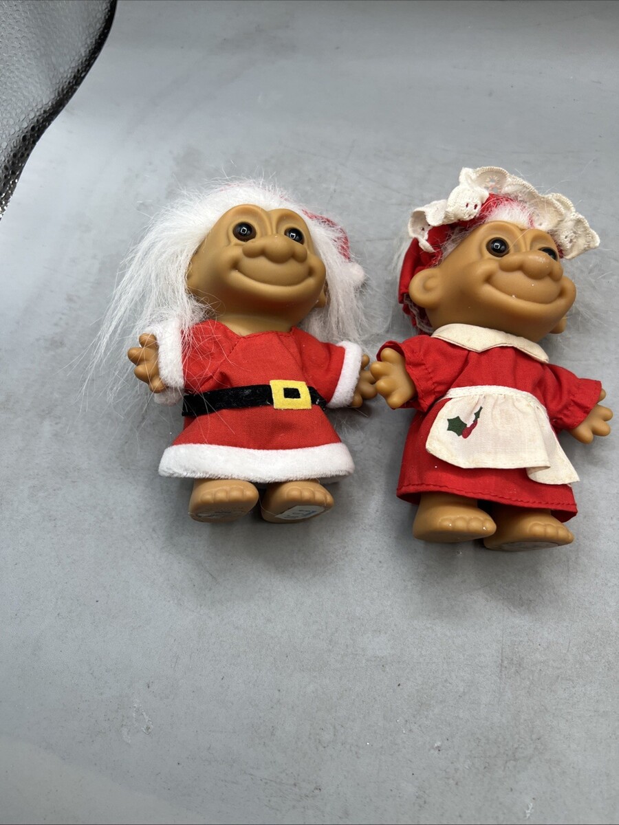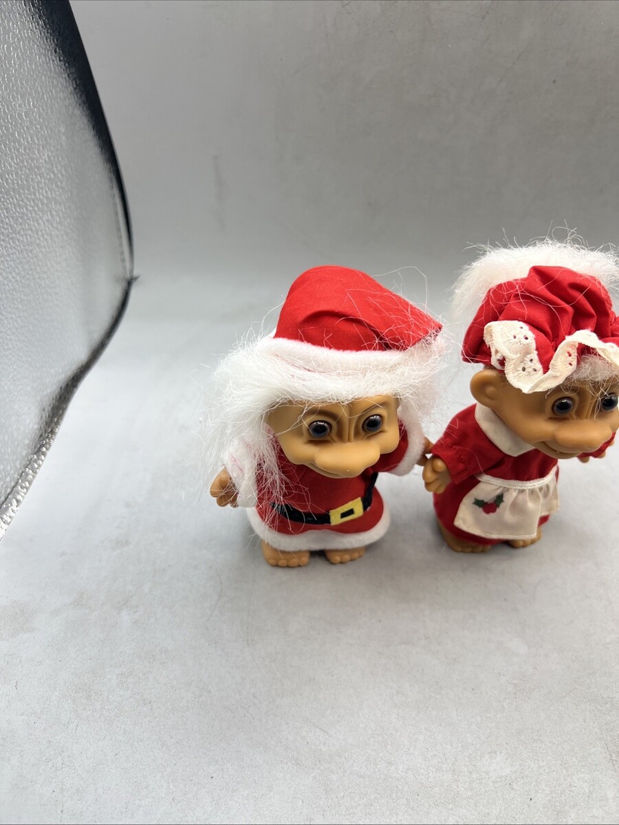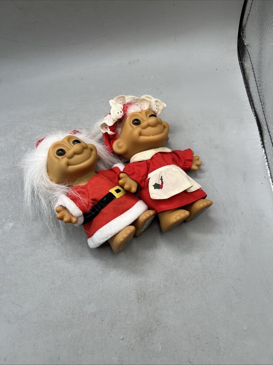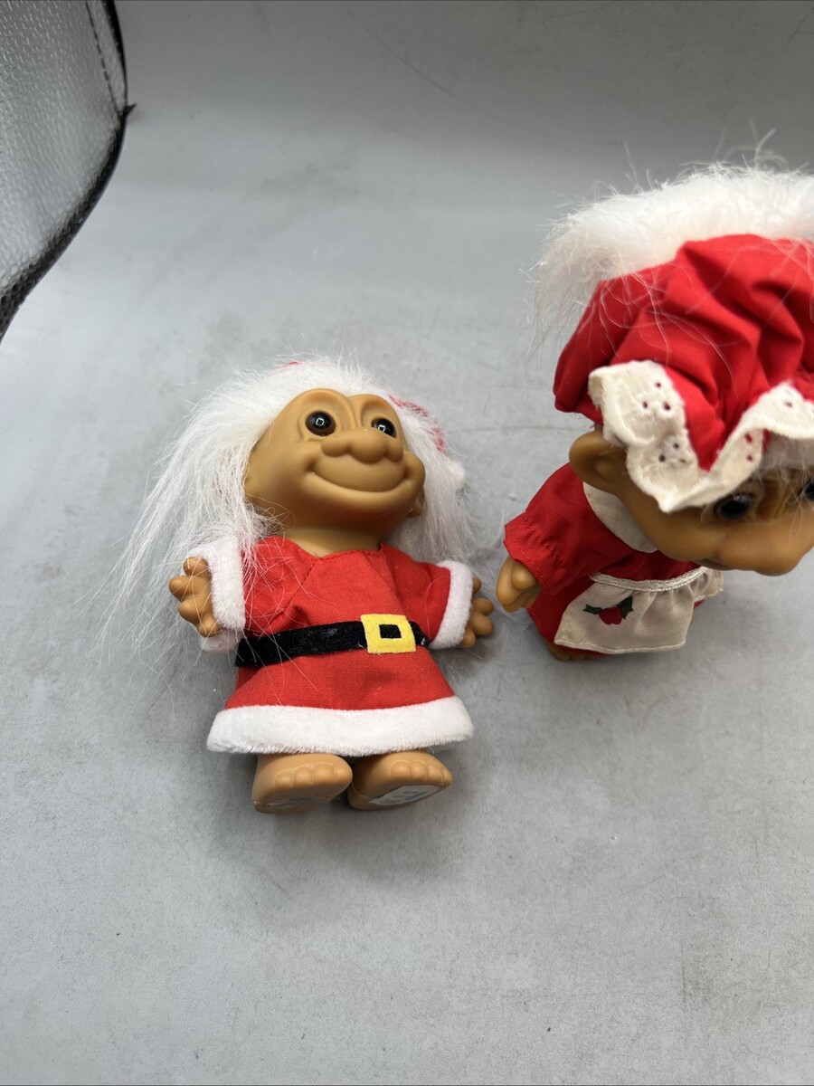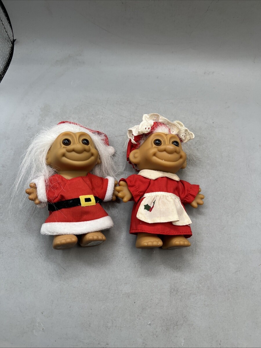 2 Russ Christmas Trolls Mr And Mrs Claus Holiday Santa Dolls 8" - 1990's Vintage