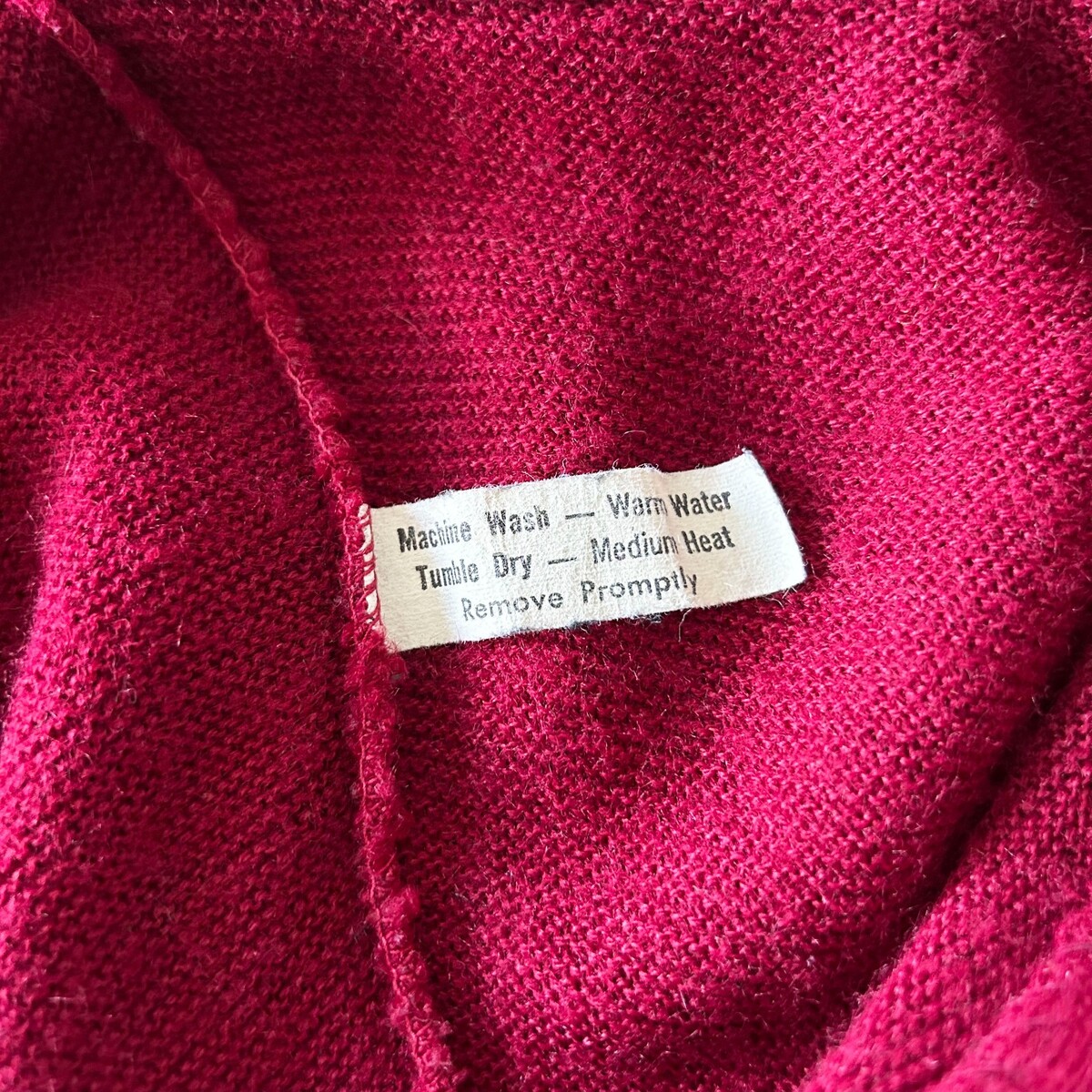 Classic vintage acrylic cardigan sweater in a magenta/burgundy color.?Soft, cozy, and easy to care for ? a timeless retro style that works for anyone.