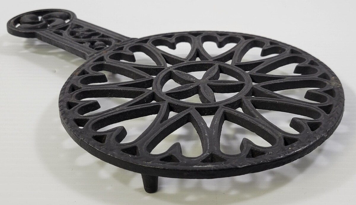 Wilton Black Cast Iron Trivet Pot Holder Heart Shape Design