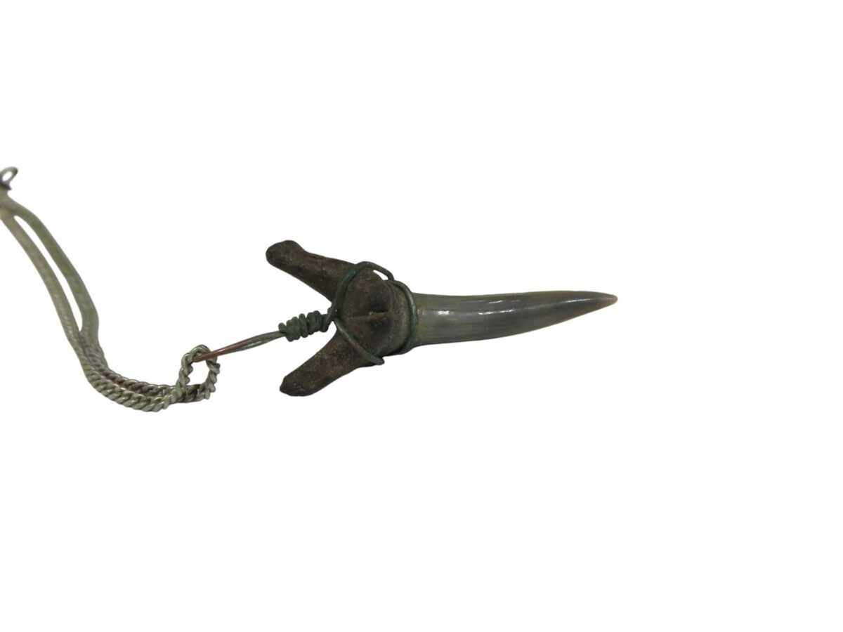 TIGER SHARK TOOTH FOSSIL PENDANT W/ STERLING SILVER CHAIN NECKLACE