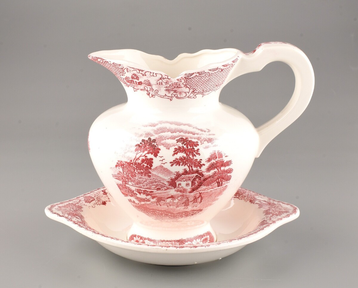 *Vintage Red Toile Cream Pitcher & Plate and similar items