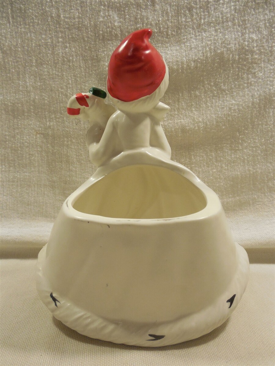 Vtg Napco Japan Ceramic Christmas Snowflake Girl with Candy Cane Planter X-8390