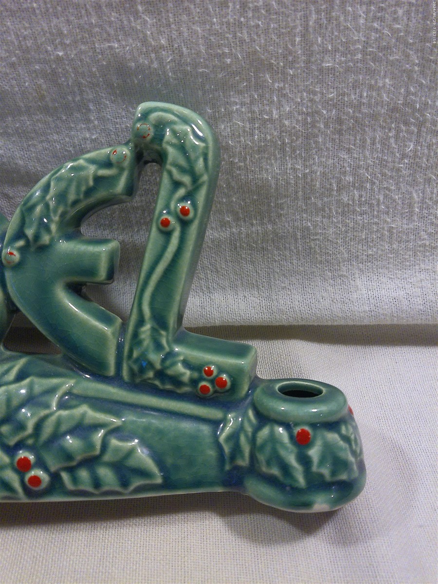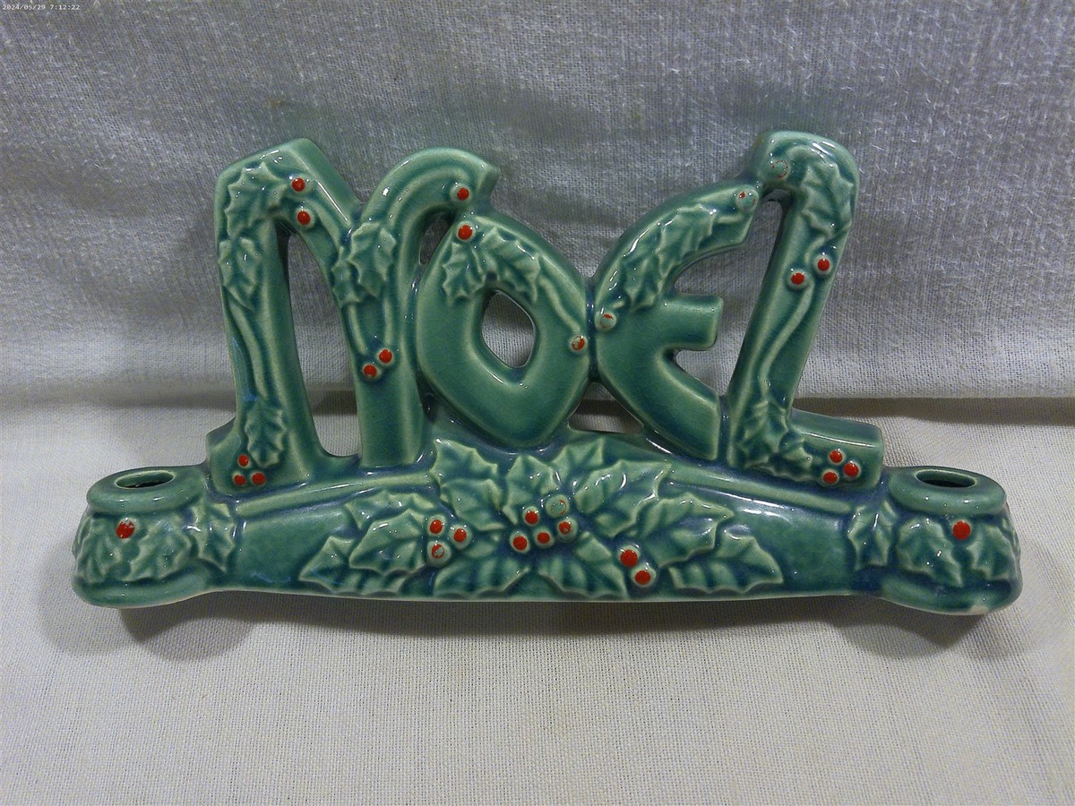 Vintage Lipper & Mann Japan Ceramic Christmas Green NOEL Candle Holder