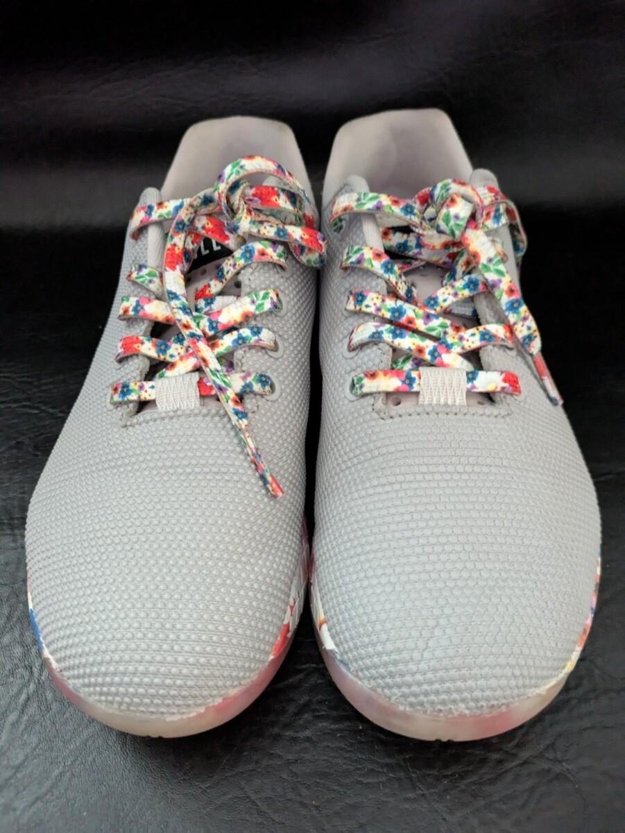 Elevate your workout game with these stylish and comfortable NoBull Floral Trainers. The gray sneakers feature a low-top design and lace-up closure, making them perfect for gym training, CrossFit, running, and jogging. The synthetic upper material and breathable features ensure your feet stay cool and comfortable during hot summer days, fall, and spring seasons. The trainers are available in women's size 10.5 and men's size 9, with a standard shoe width. The NOBULL brand is known for its high-quality products, and these sneakers are no exception. The bull theme adds a unique touch to the design, making them stand out from other athletic shoes. Get ready to tackle your next workout with these versatile and trendy trainers.