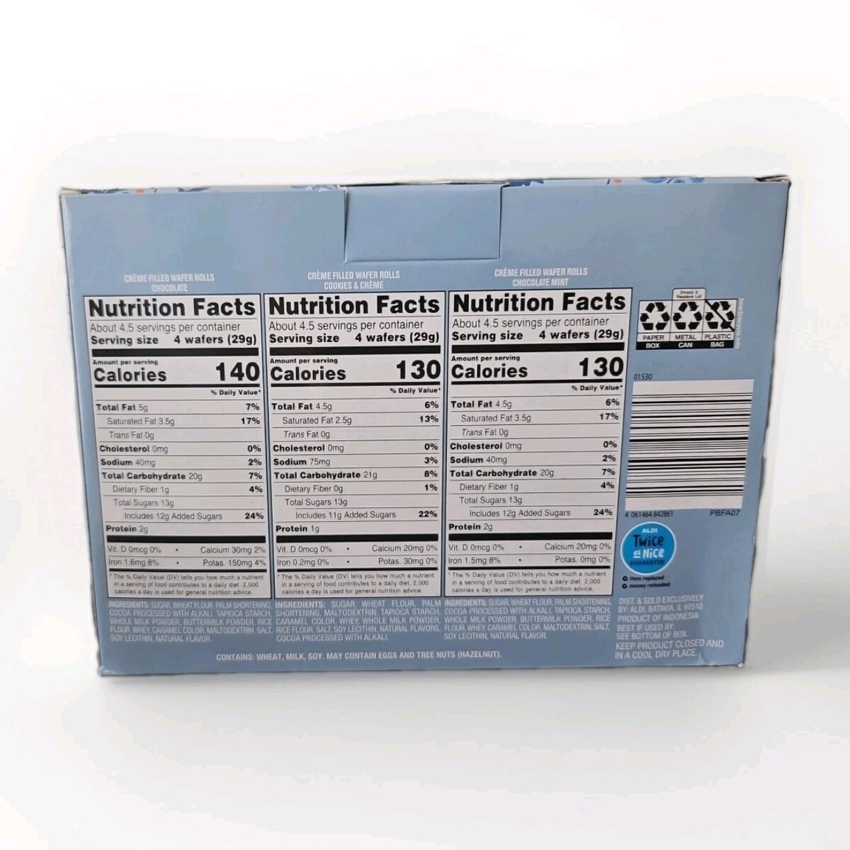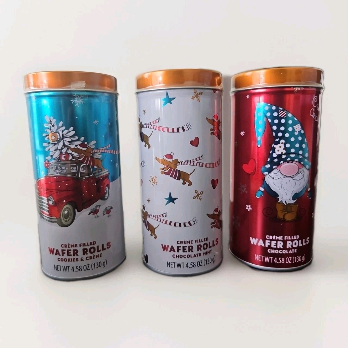 Benton's Creme Filled Wafel Rolls are a delicious treat perfect for the holiday season. These cookies come in three decadent flavors: Chocolate, Cookies Cream, and Chocolate Mint. Made with cream filling and a crunchy wafer texture, each serving is packed with 130 calories. Imported from Indonesia, these cookies are sure to satisfy your sweet tooth and make your Christmas celebrations extra special. Enjoy them while they last with an expiration date of 09/2026.