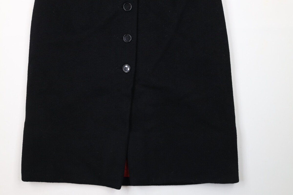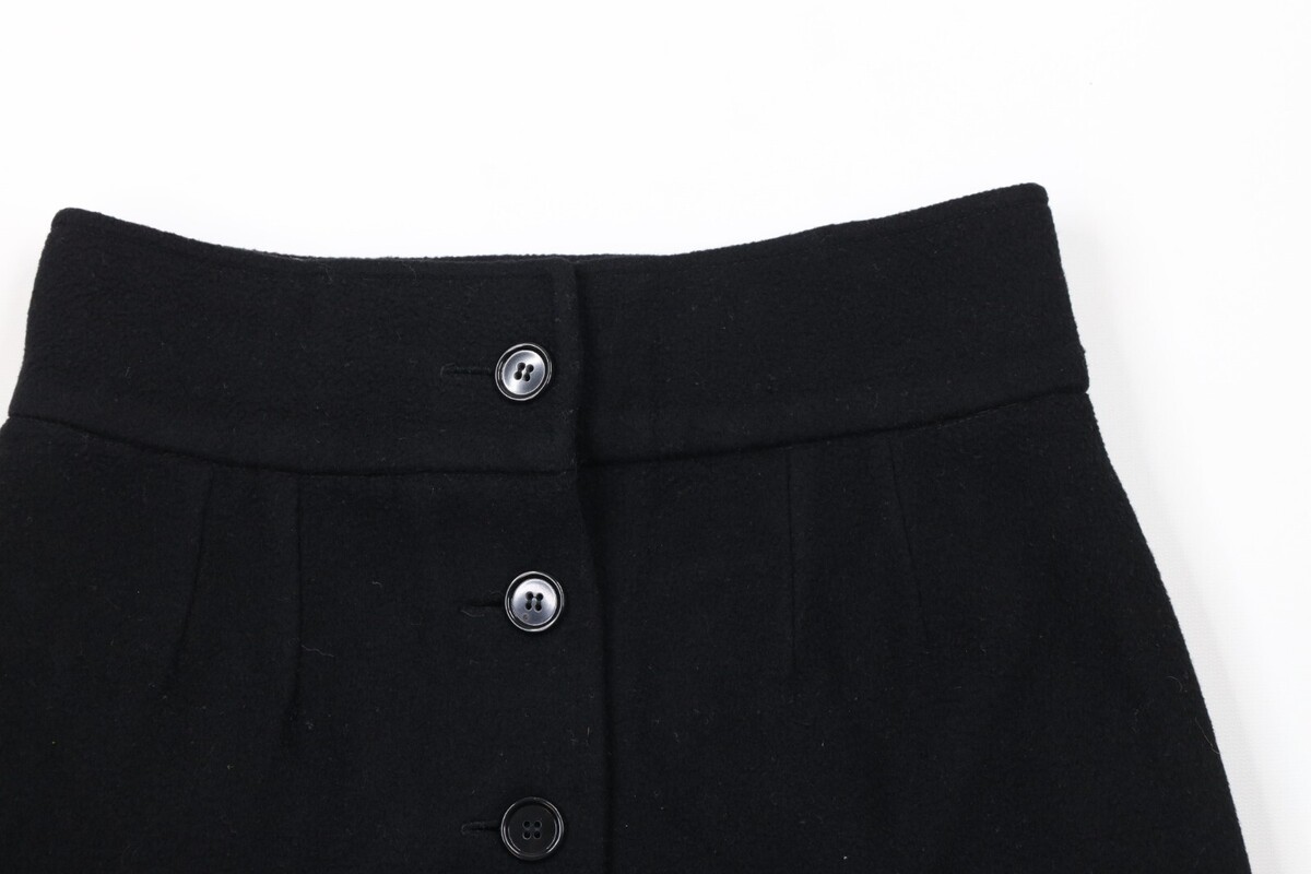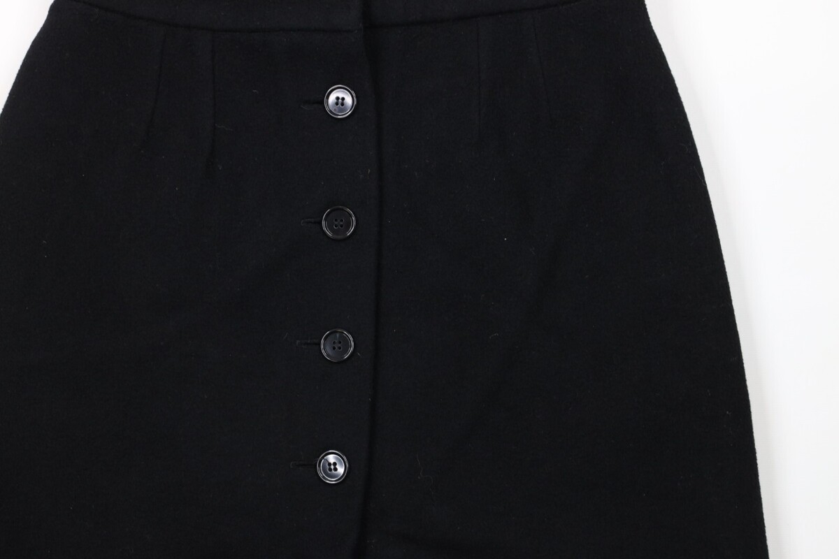Vtg 50s 60s Rockabilly Goth Womens 27 Heavyweight Wool Button Skirt Black USA
