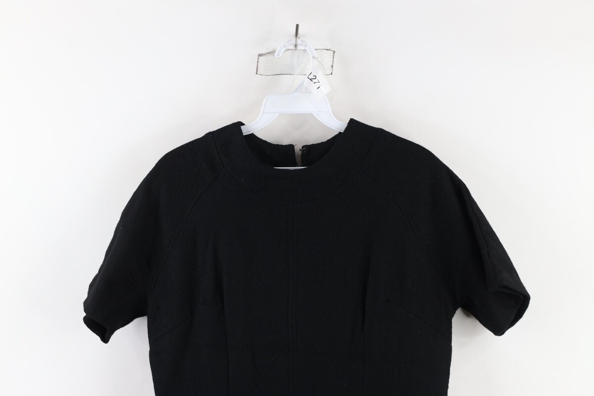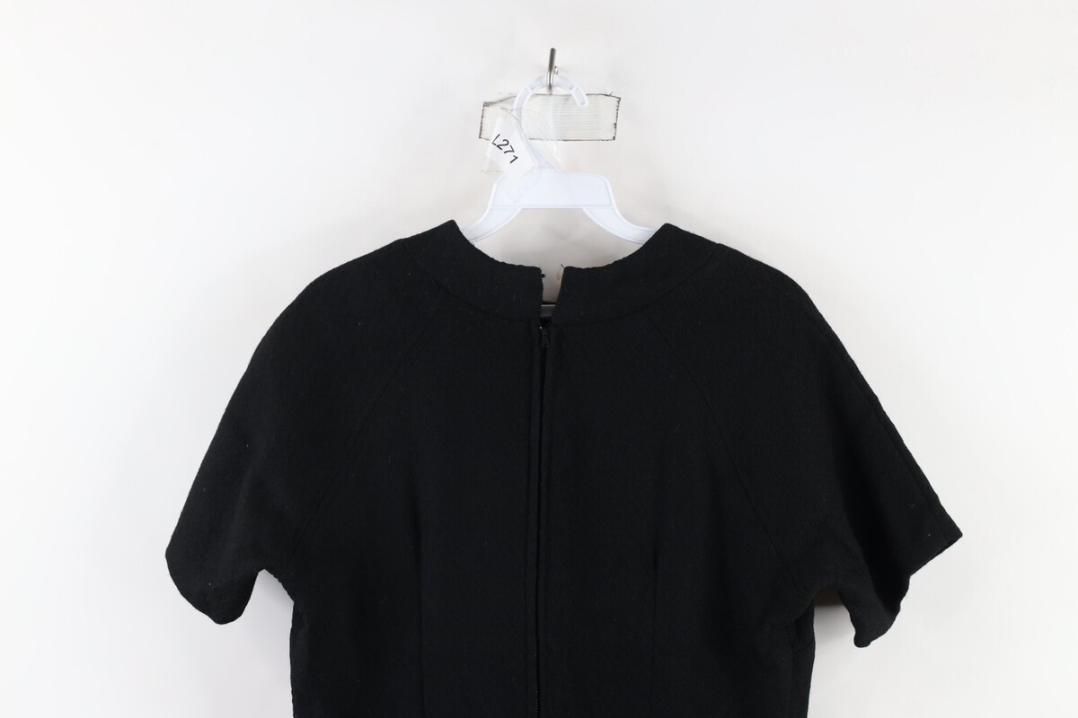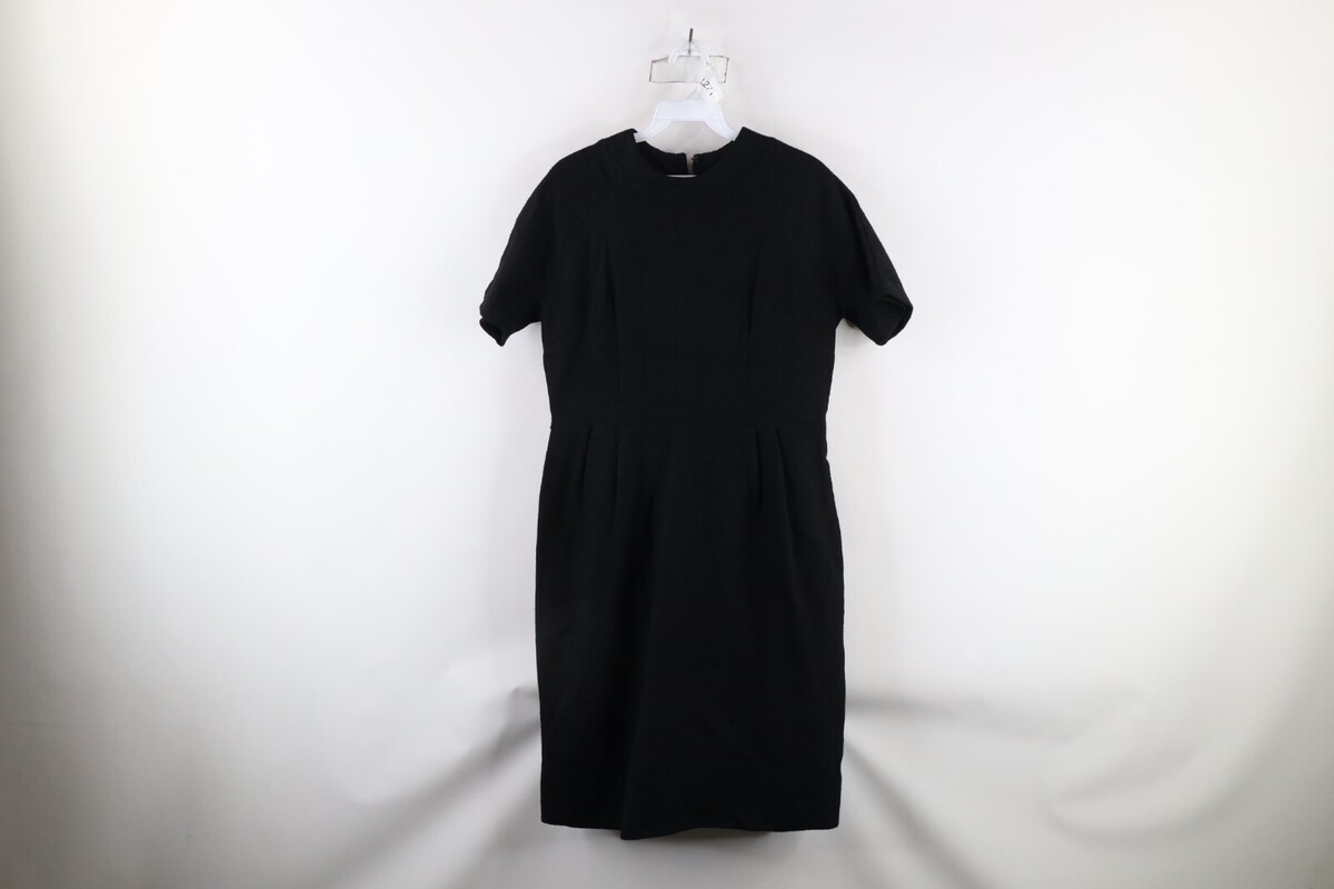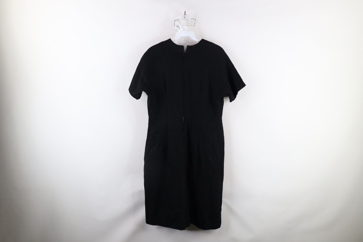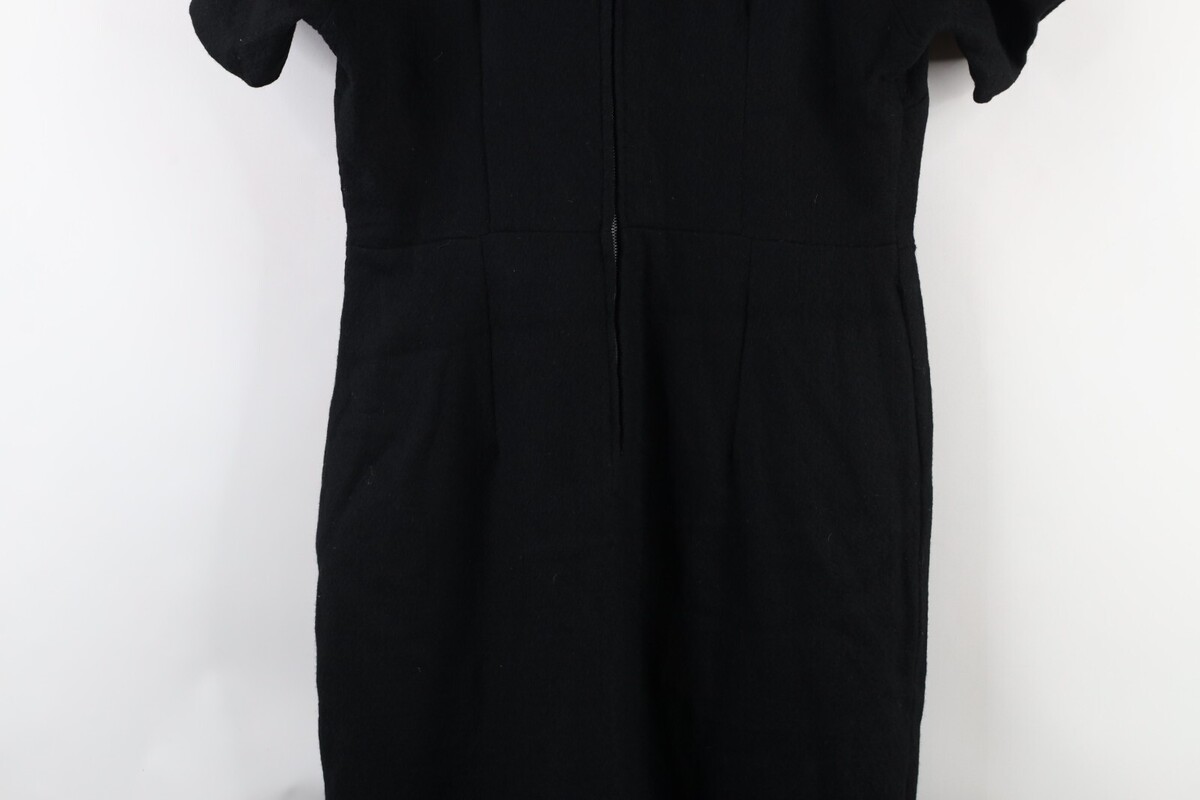Vtg 50s 60s Rockabilly Womens Size 16 1/2 Wool Knit Short Sleeve Dress Black USA