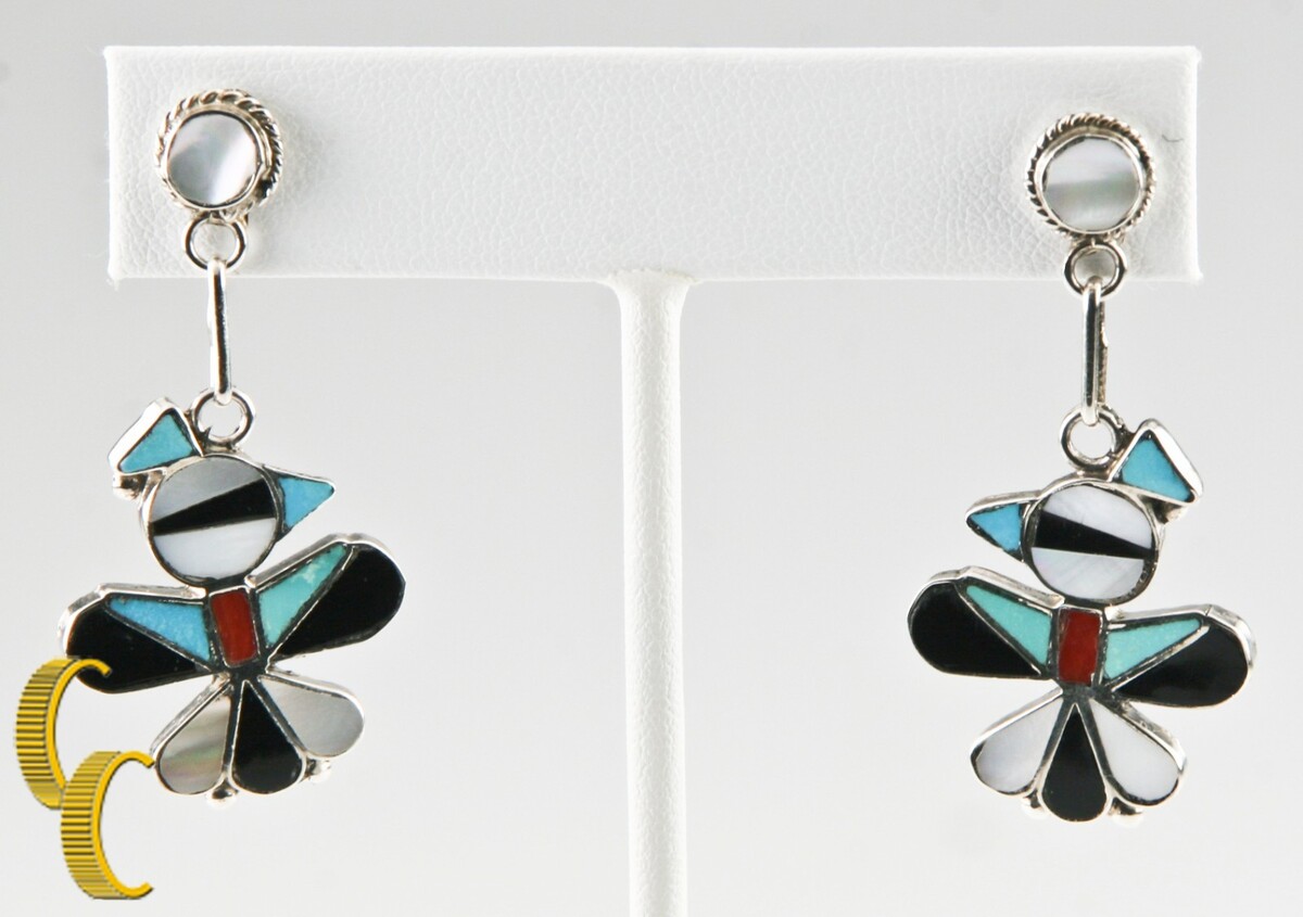 Native American Semi-Precious Inlay Eagle Necklace and Earring Set w/ Box Chain