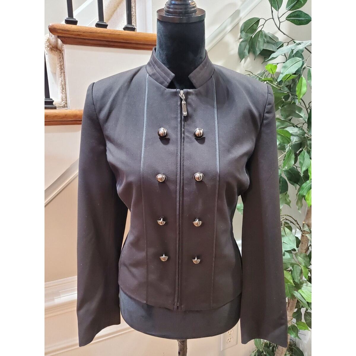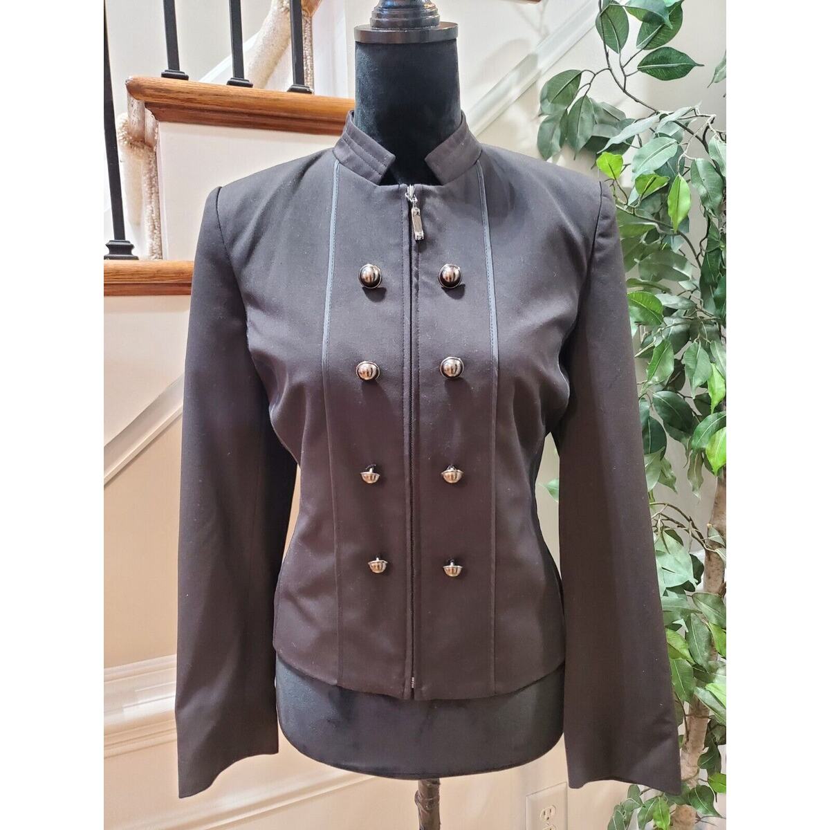 Lana Lee Women's Black Cotton Long Sleeve Full Zip Front Casual Jacket Size 6P