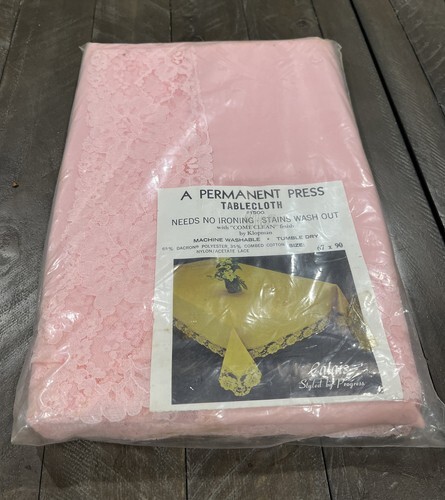 Vintage Calais Pink Lace Tablecloth 67 X 90 Progress Polyester Cotton