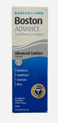 Box is open. Solution is new and sealed Expiration Date of 05/2027 ? Step 2 in the Boston ADVANCE Formula Care System: Gas permeable contact lens conditioning solution that disinfects, cushions, conditions, and wets lenses for lasting comfort. Designed for use after Step 1 in the Boston ADVANCE Formula Care System. For use with scleral, ortho-k, and all rigid gas permeable (RGP) contact lenses. ? Boston Contact Lens solution: Contact lens conditioning solution for rigid gas permeable (RGP) lenses that cushions and wets lenses for comfortable wear. This cleaning solution disinfects to kill germs and supports overall eye care. ? Boston Contact Lens Solutions: Boston is made for rigid gas permeable (RGP) lenses, offering a range of cleaning and conditioning solutions. Designed to support eye health and ensure comfortable contact lens wear. ? Recommended by eye doctors: Boston is the #1 eye doctor recommended brand of rigid gas permeable (RGP) contact lens solutions, made by the eye experts at Bausch + Lomb. Eye care you can trust. ? Bausch + Lomb Trust: Boston contact lens solutions from the eye care experts at Bausch + Lomb support eye health by keeping rigid gas permeable lenses clean, hydrated, and comfortable.