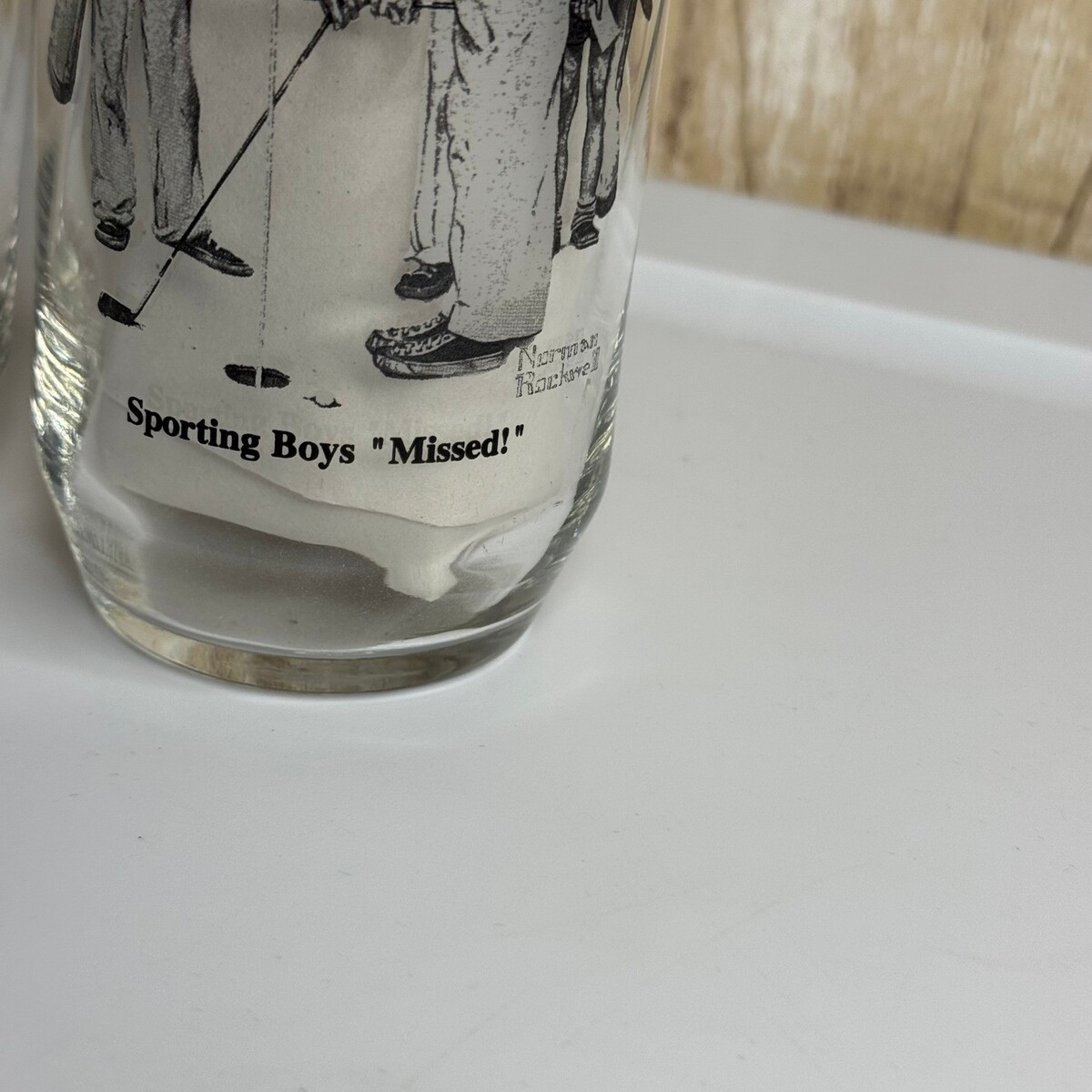 Vintage Norman Rockwell Sporting Boys Missed Golf Glasses Set of 2
